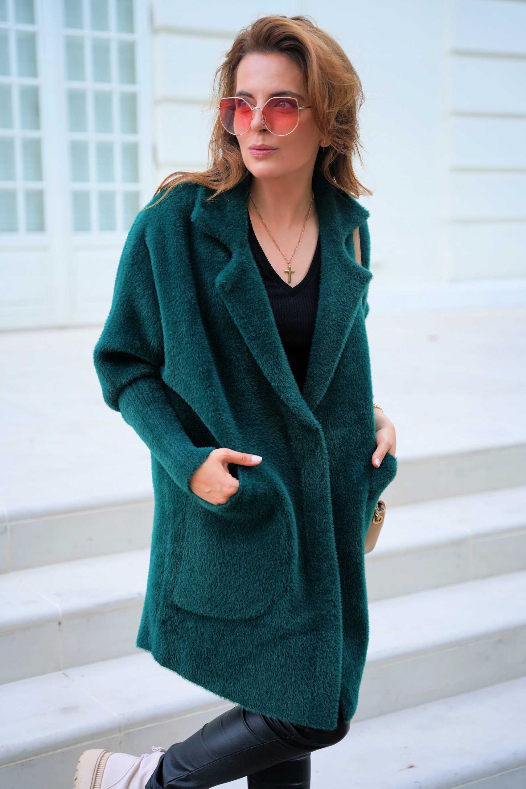 - Пальто имеет два глубоких кармана, пришитых по бокам. в форме ведра;