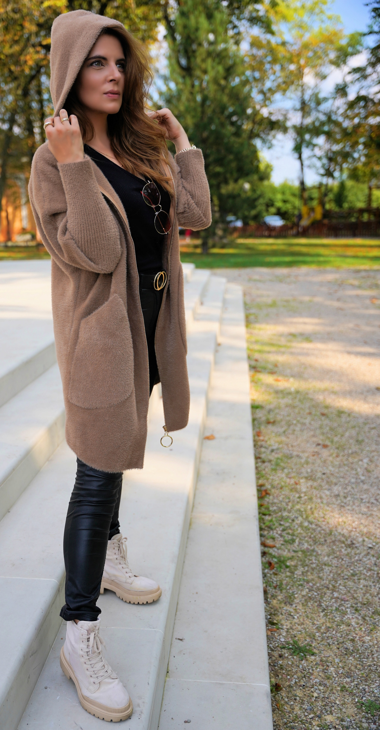 ПАЛЬТО ПЕРЕХІДНЕ З АЛЬПАКИ З КАПЮШОНОМ, CAMEL, РОЗМ. ОВЕРСАЙЗ