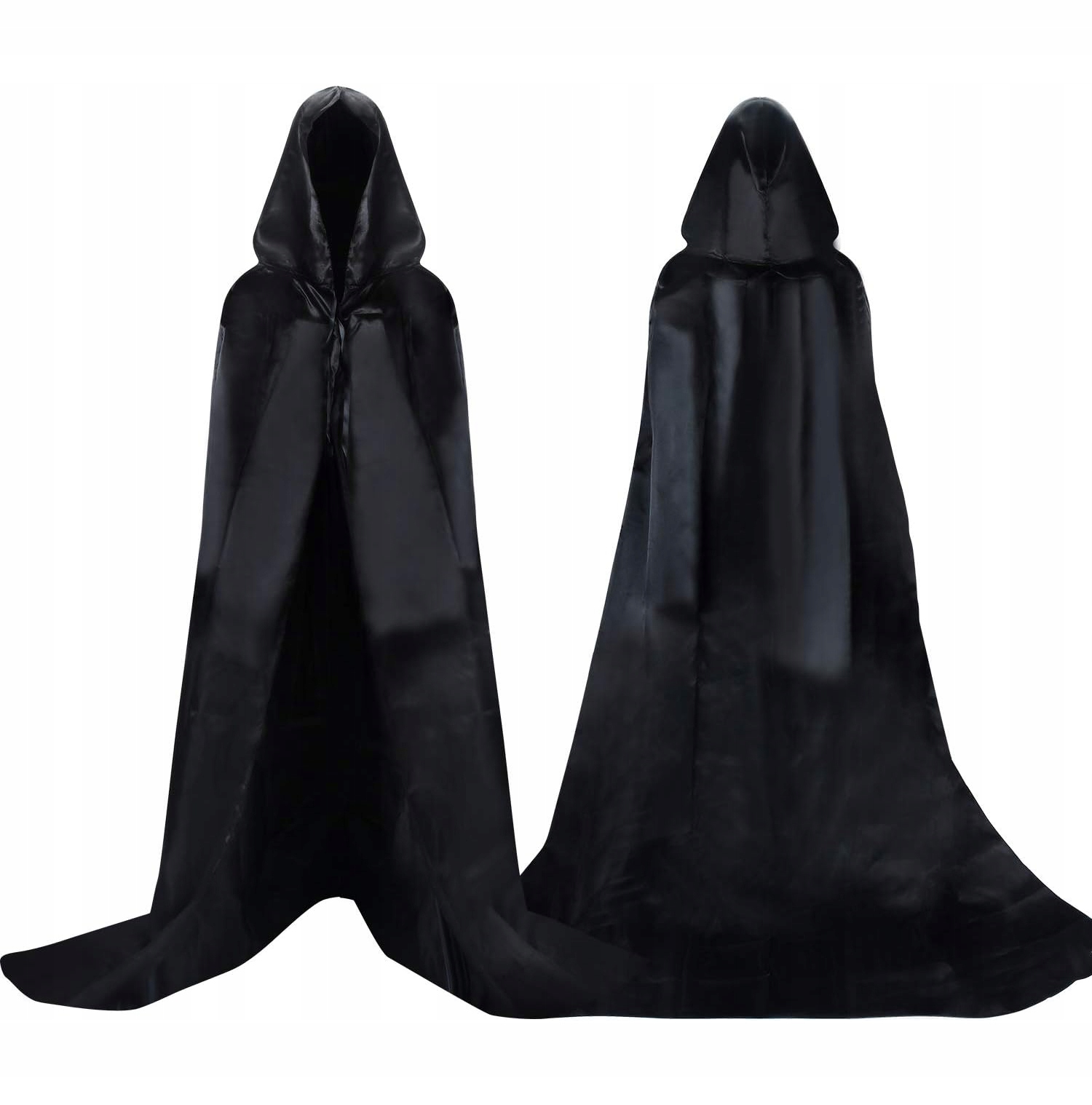 ПАЛЬТО УНИСЕКС С КАПЮШОНОМ ЧЕРНЫЙ АТЛАСНЫЙ БАННЫЙ ХАЛАЛ HALLOWEEN CAPEA