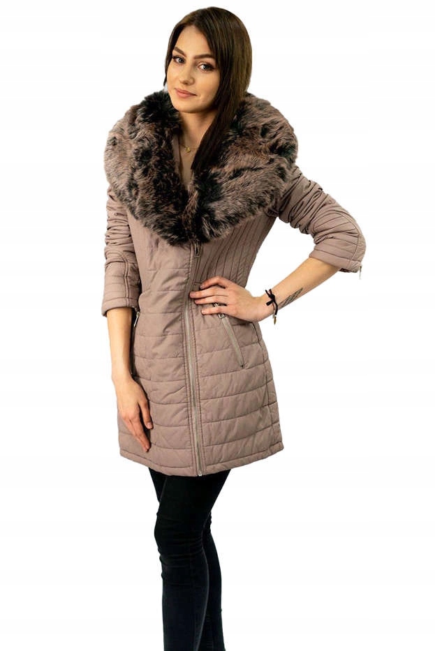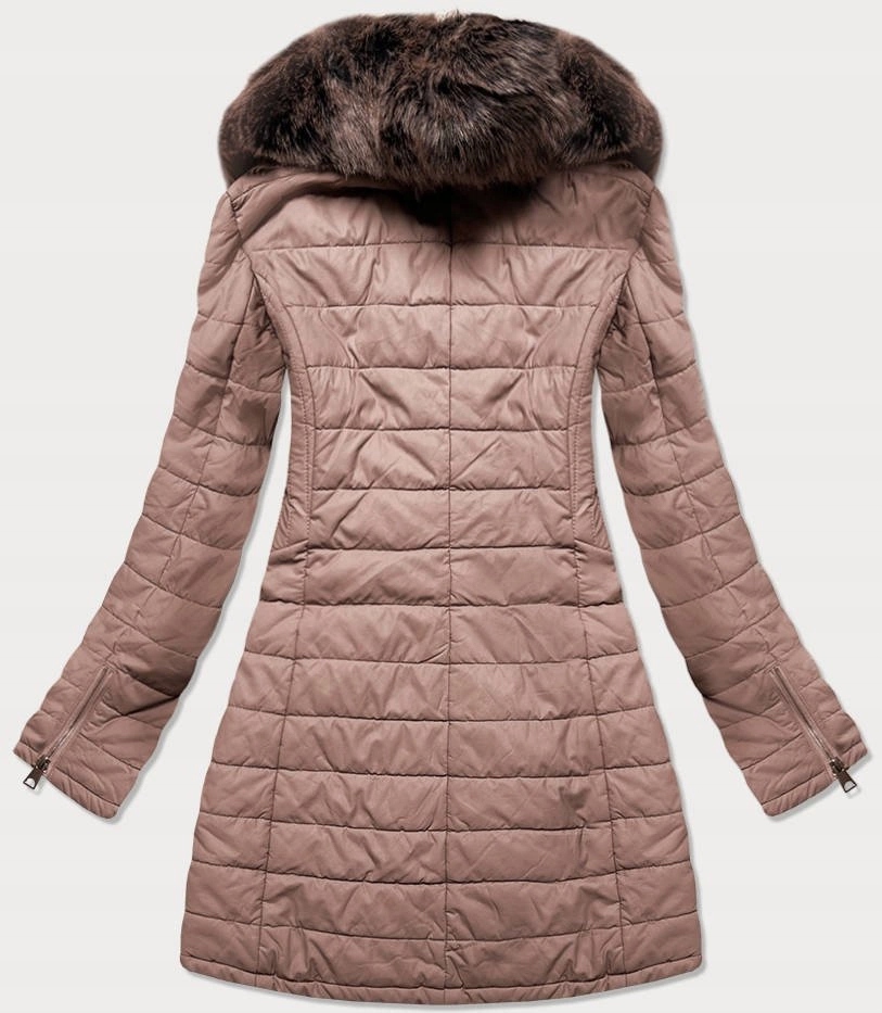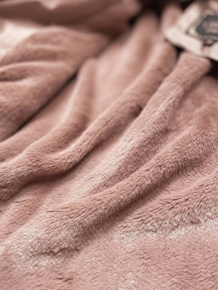 Женское пальто из экокожи с мехом, античный розовый (ld5520) - S (36)