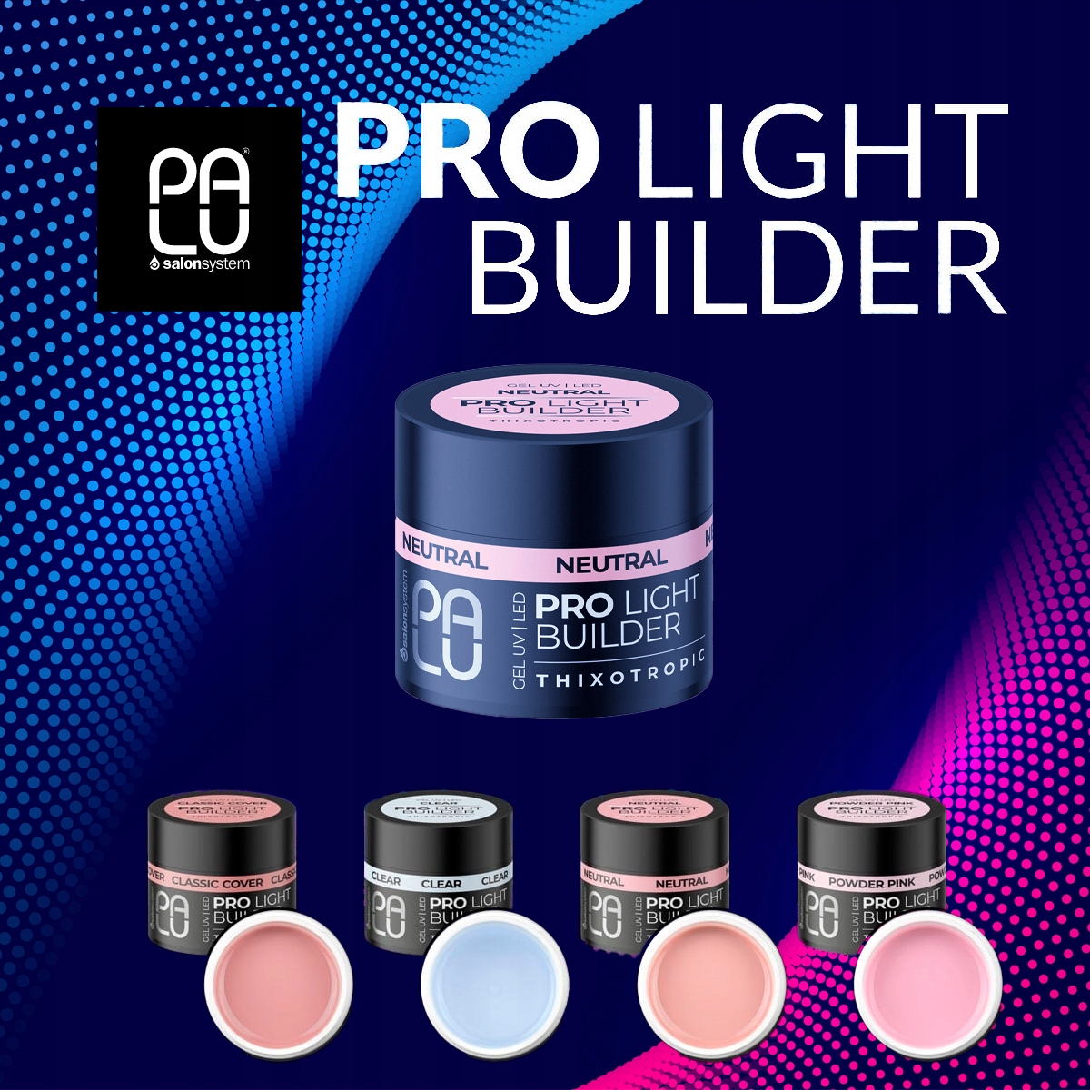 PRO LIGHT BUILDER GEL — гель, обладающий свойствами базовое, наращивающее и полирующее средство. В его состав входят адгезивные вещества, повышающие сцепление с натуральной ногтевой пластиной, наращивающие и полирующие вещества. Для достижения оптимального адгезионного эффекта на тонких проблемных ногтях стоит использовать спирт из любой базы Палу.