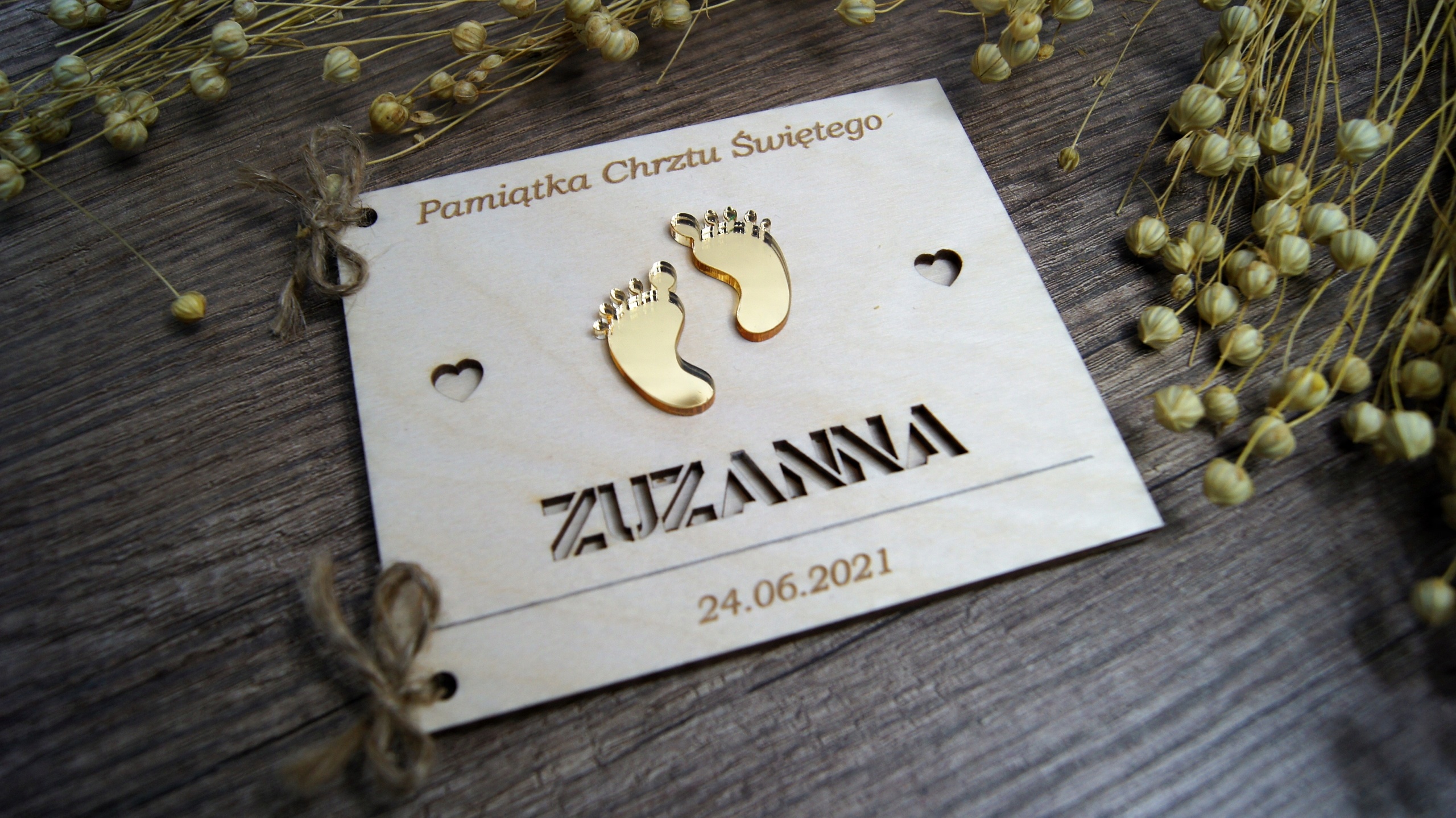 Pamiątka Chrzest Święty drewniana złoty dekor 3D