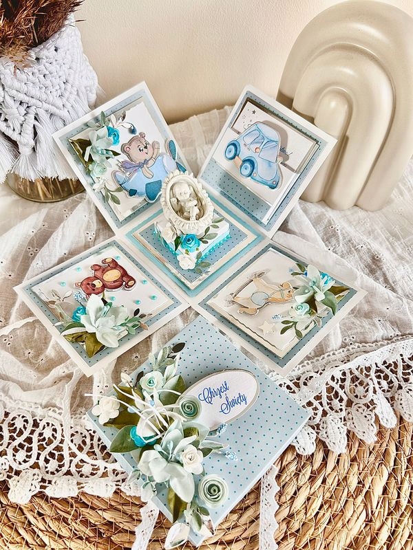 Pamiątka chrztu kartka na chrzest święty exploding box super prezent