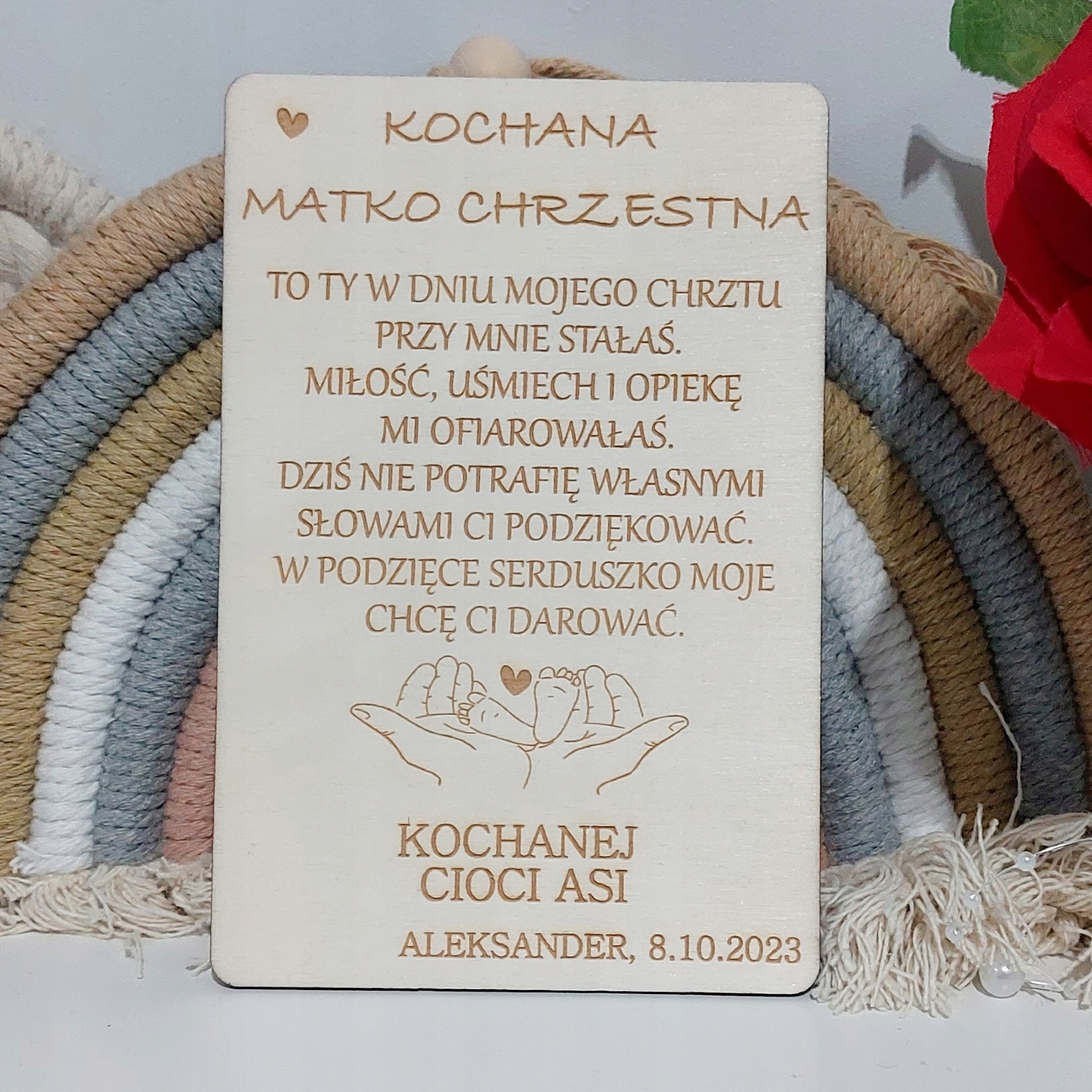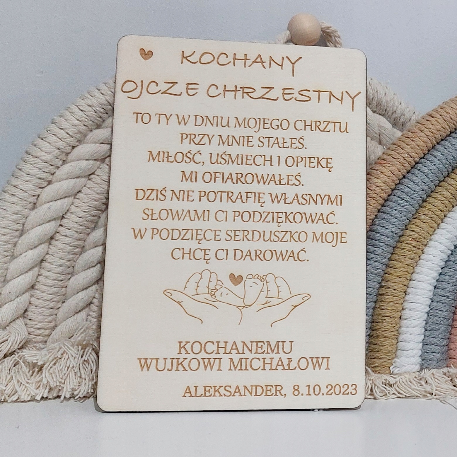 Элегантная деревянная благодарственная записка одному крестному. Если хотите сделать подарок обоим родителям, купите две штуки!