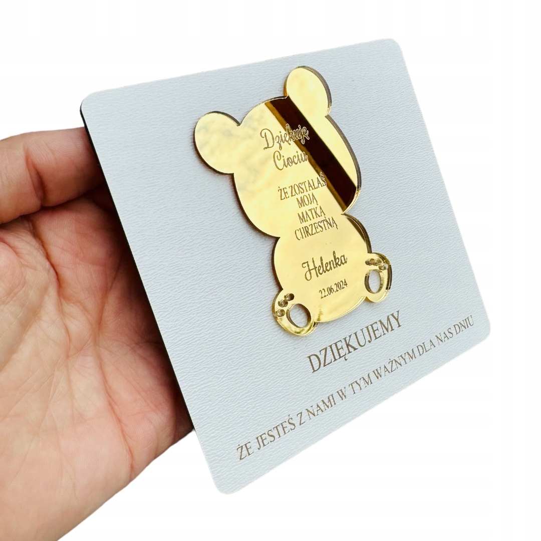 Pamiątka chrztu Podziękowanie ZŁOTE dla Rodziców Chrzestnych komplet 2 szt.
