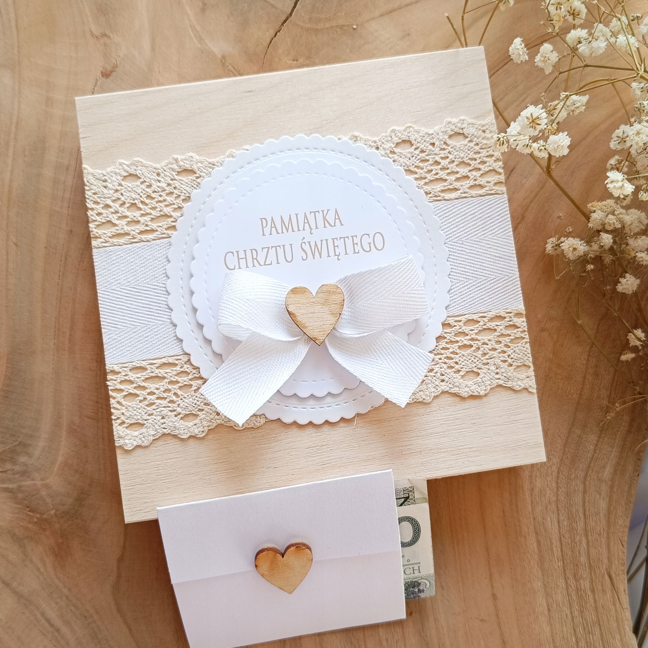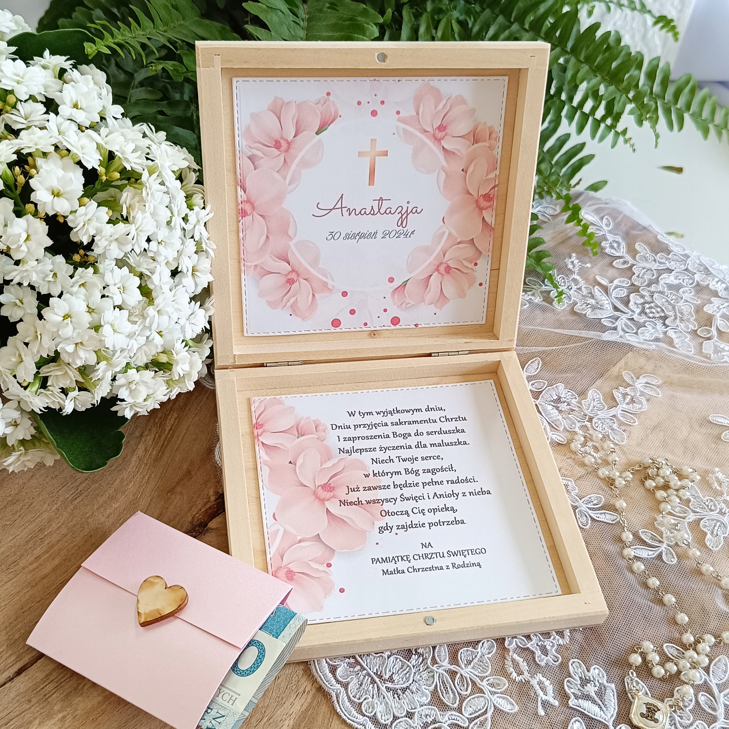 PAMIĄTKA CHRZTU ŚWIETEGO PUDEŁKO NA CHRZEST ŻYCZENIA NA CHRZEST imię data