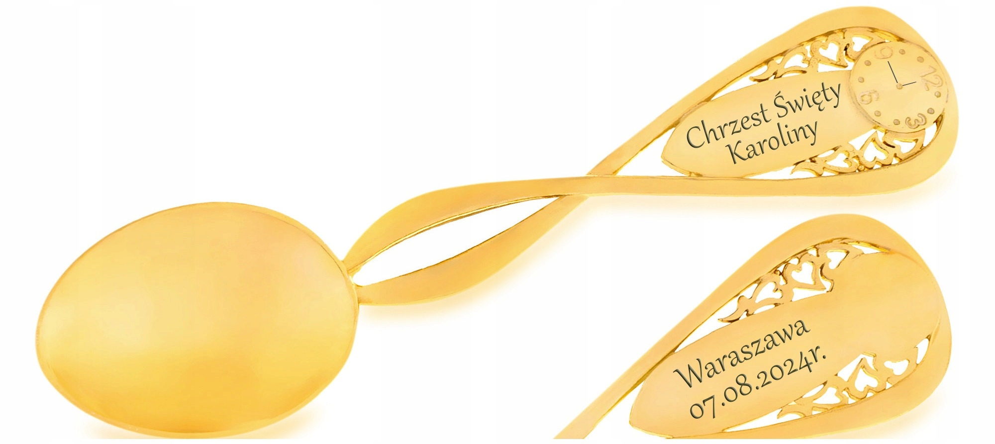 PAMIĄTKA CHRZTU ŚWIĘTEGO DLA DZIEWCZYNKI, CHŁOPCA POZŁACANA ŁYŻECZKA+GRAWER