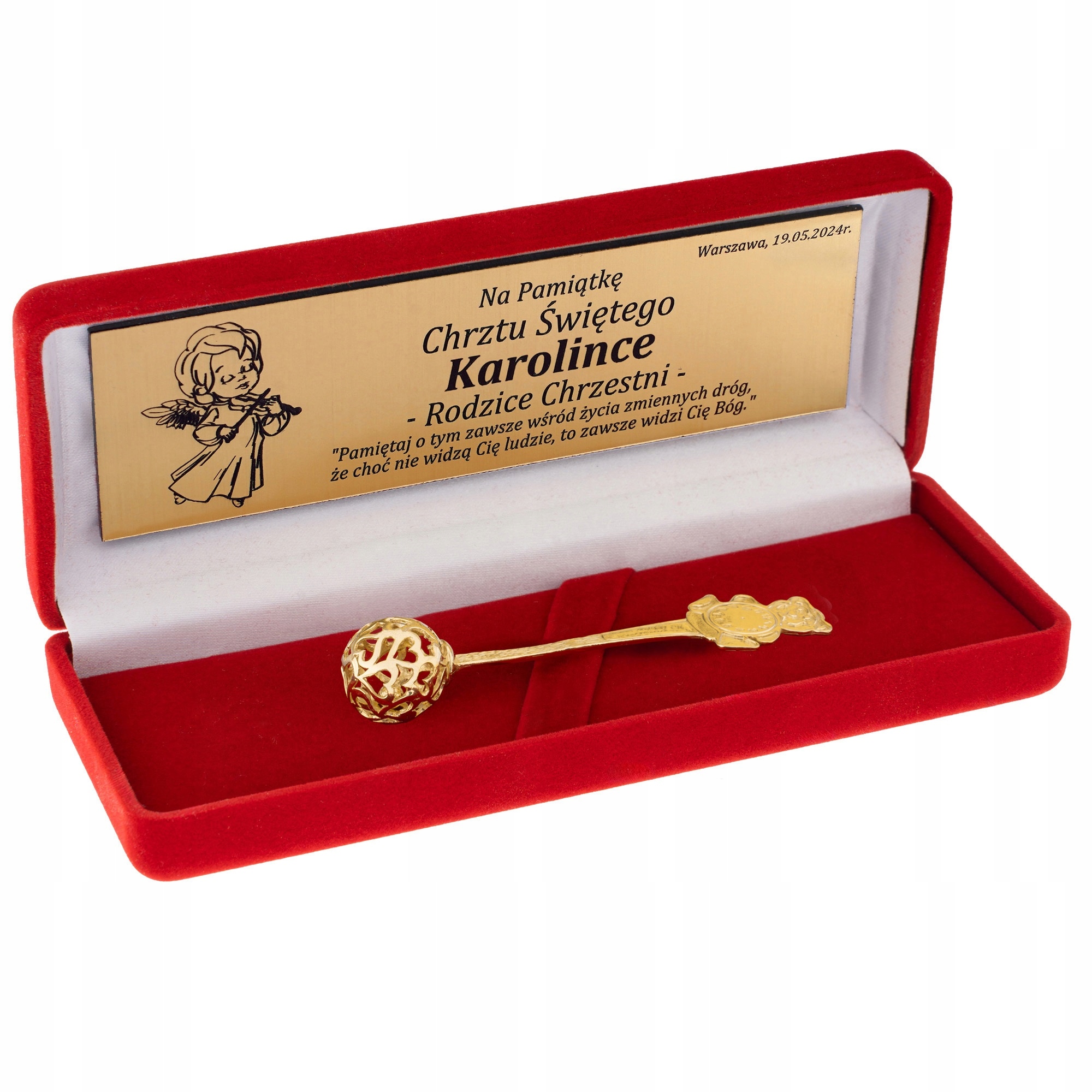 PAMIĄTKA CHRZTU ŚWIĘTEGO DLA DZIEWCZYNKI SREBRNA ZŁOCONA GRZECHOTKA GRAWER