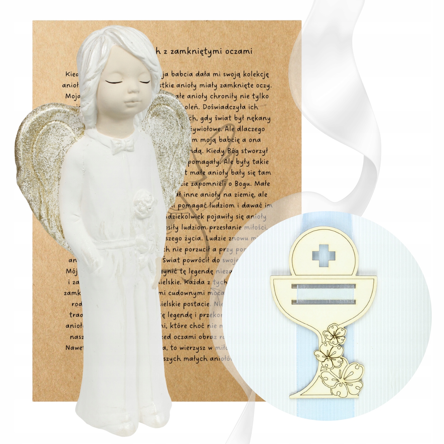 PAMIĄTKA PIERWSZEJ KOMUNII ŚWIĘTEJ ANIOŁ STRÓŻ FIGURKA ZESTAW PREZENT