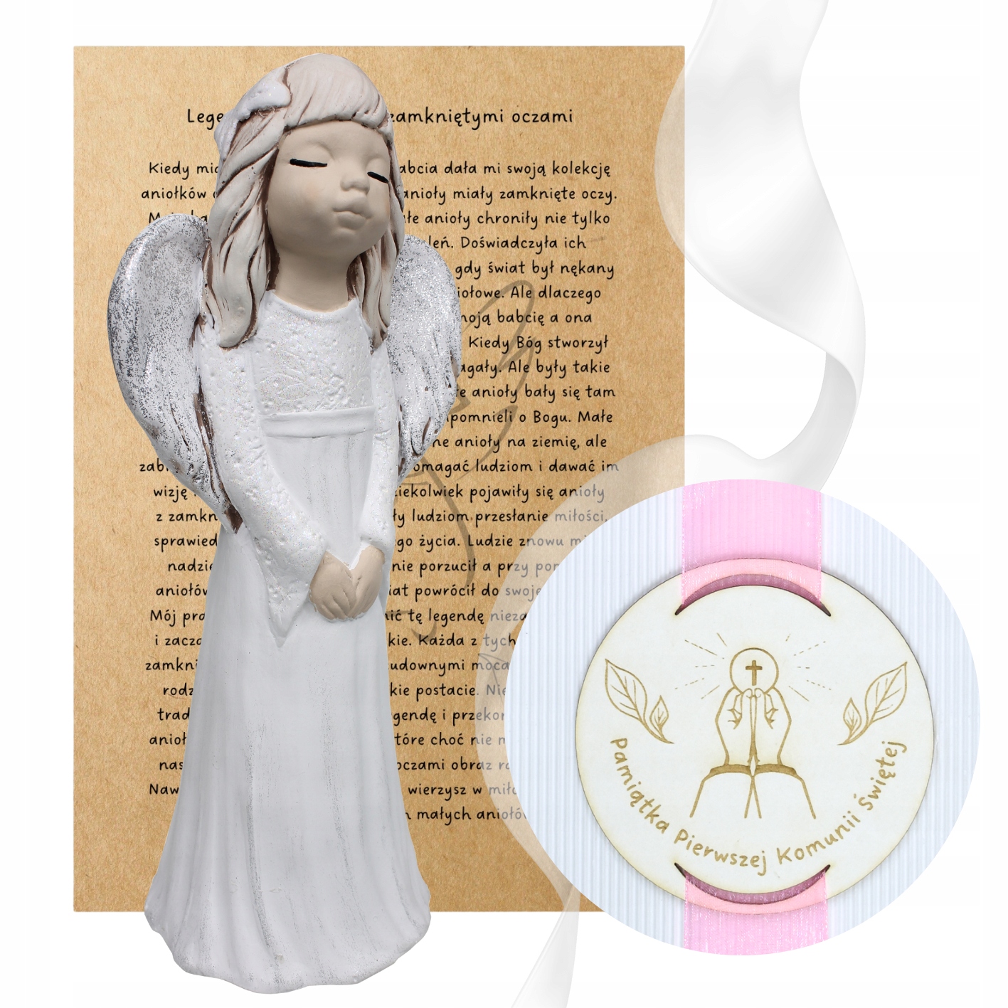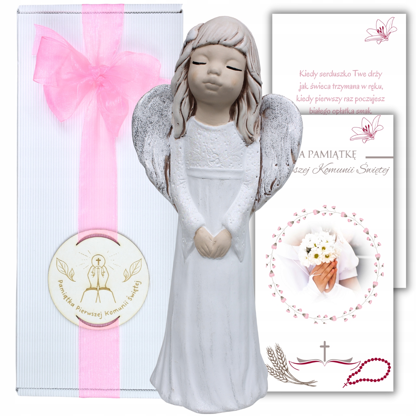 PAMIĄTKA PIERWSZEJ KOMUNII ŚWIĘTEJ ANIOŁ STRÓŻ FIGURKA ZESTAW PREZENT
