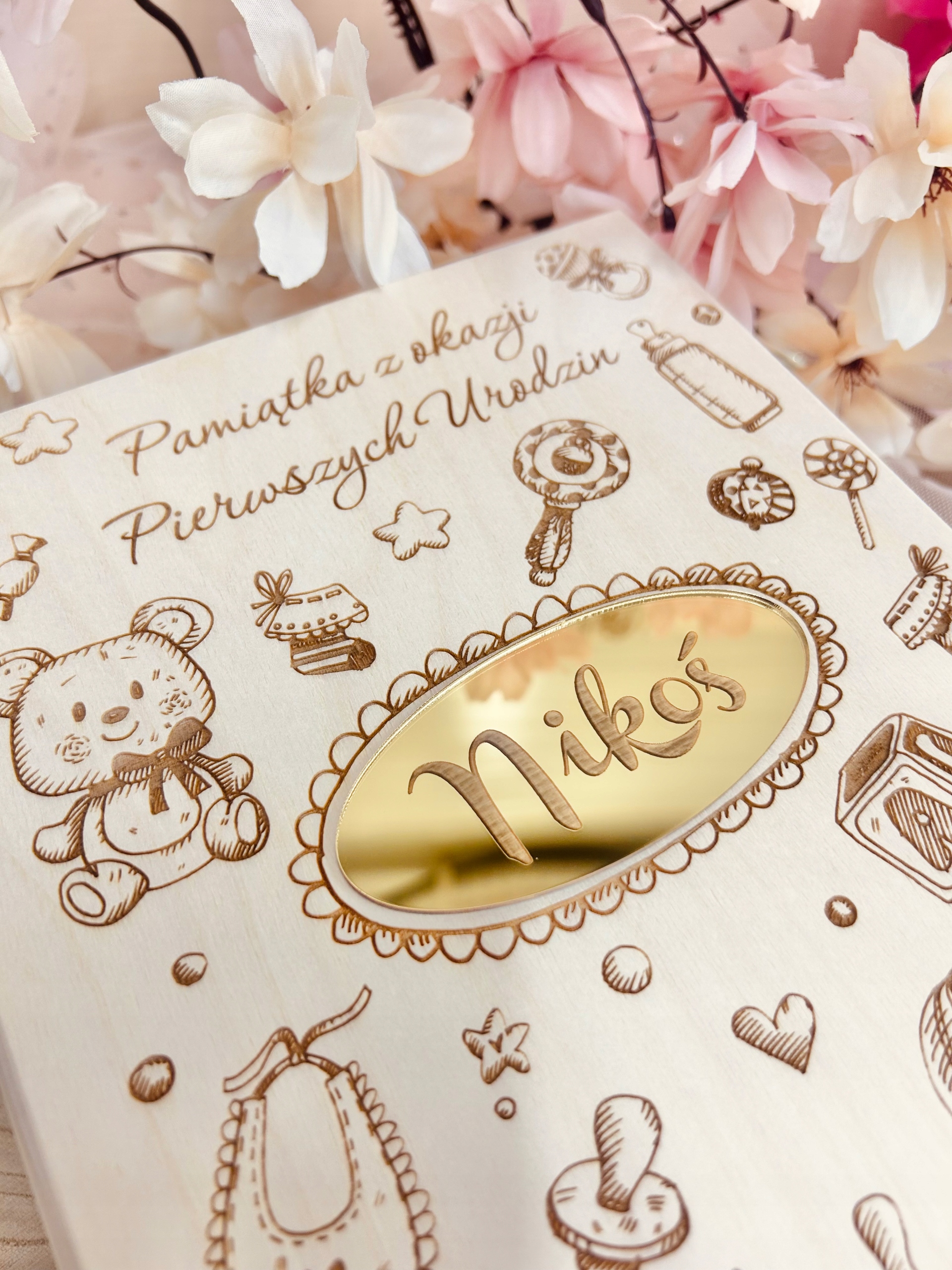 В коробочке пожелания и подпись, которую можно персонализировать. На внешней стороне коробки выгравировано имя и дата рождения ребенка или дата торжества.