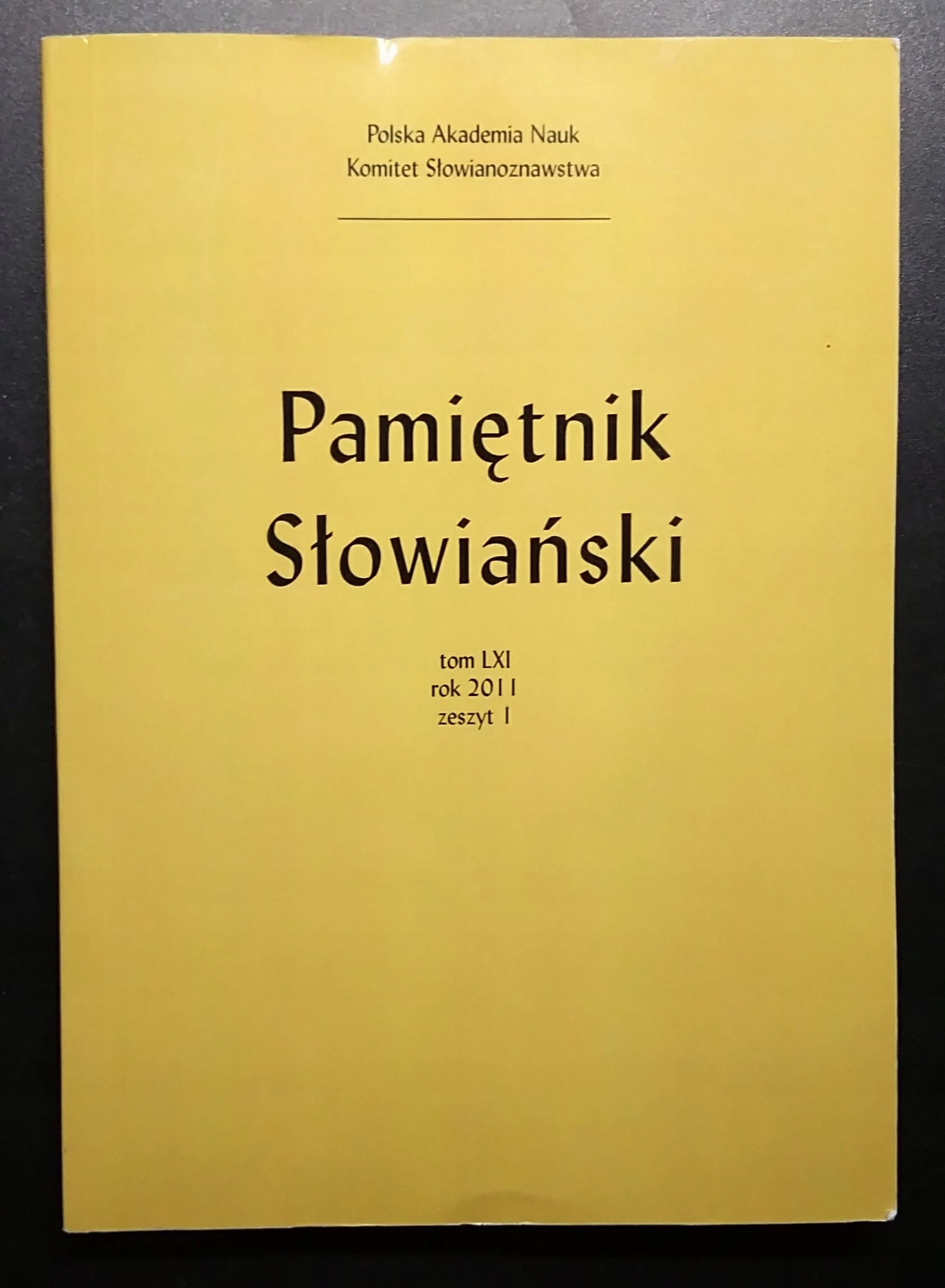 PAMIĘTNIK SŁOWIAŃSKI Tom LXI rok 2011 zeszyt 1