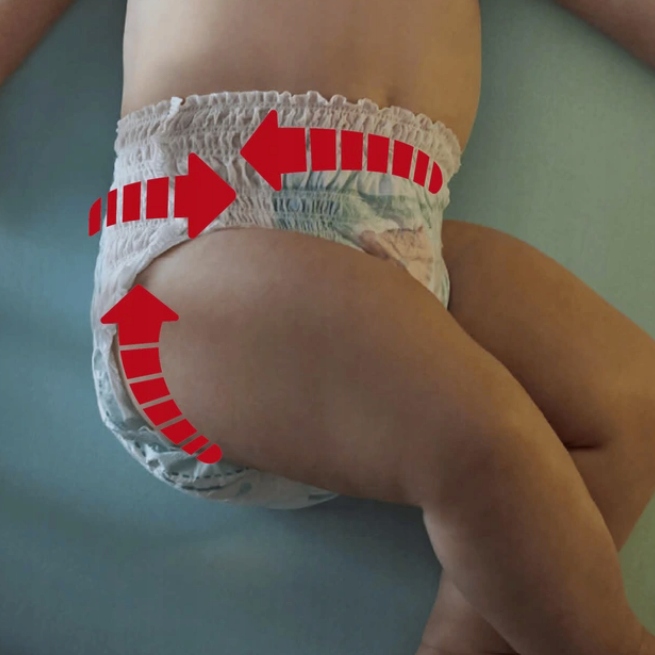 Ночью памперс с подгузниками адаптируются к телу, обеспечивая ребенку хороший ночной сон. Полная подгонка на 360 ° обеспечивается гибкой лентой вокруг талии, которая адаптируется к животику ребенка.