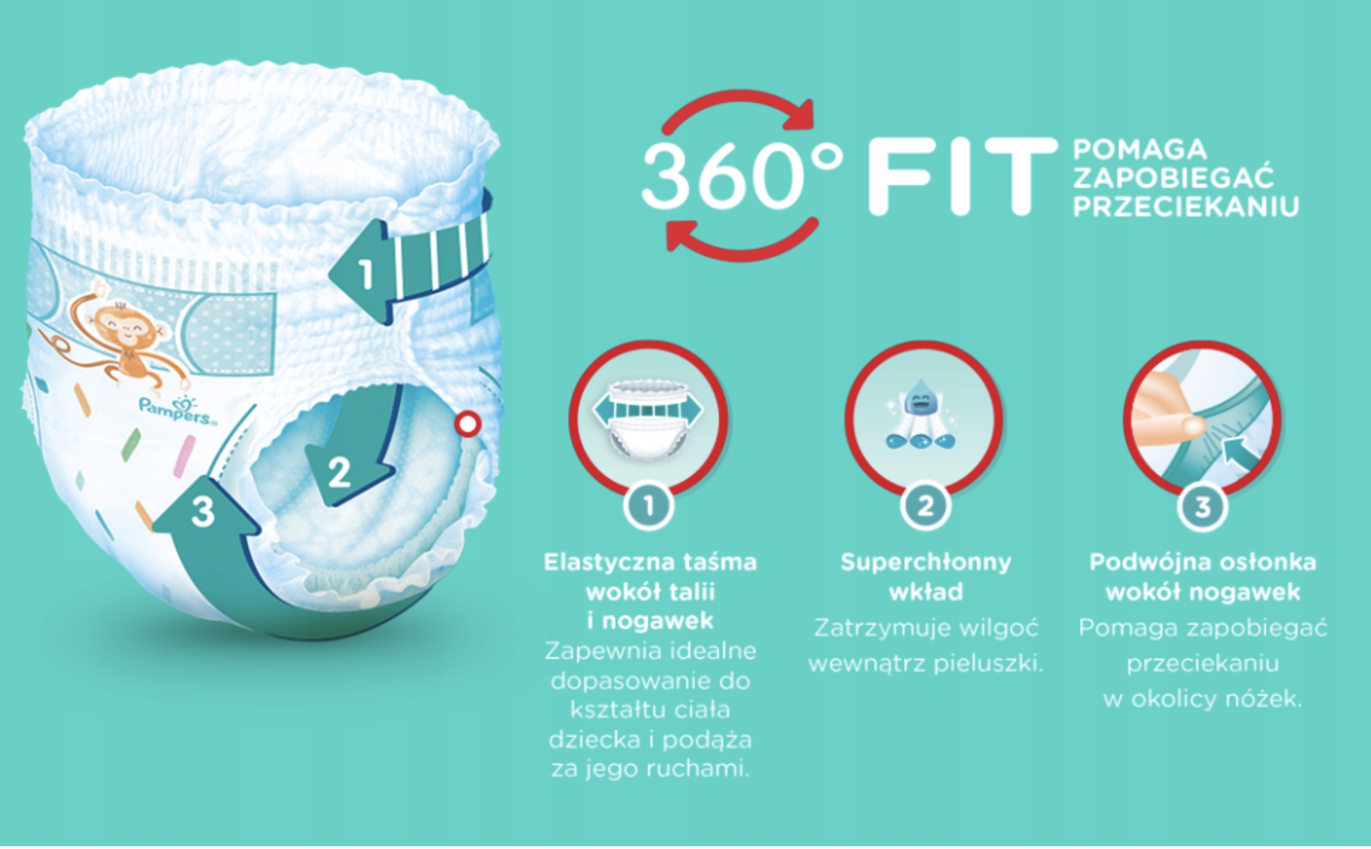 ✅ Подгузники Pampers с посадкой на 360°, предотвращающей протекание в ночное время,