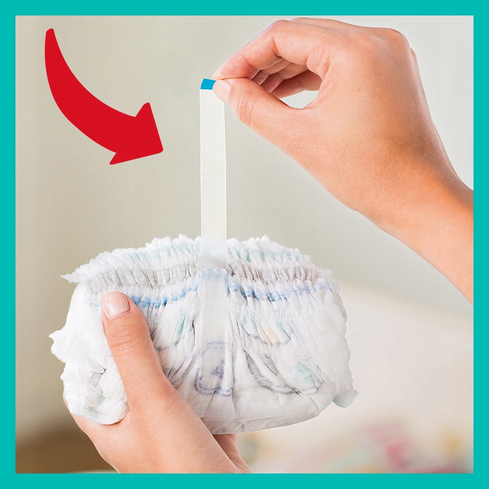 Премиум -памперс легко меняются. Один шаг достаточно, чтобы надеть его, даже когда ребенок просверлен. Чтобы удалить штаны с подгузниками, вам просто нужно демонтировать их бекон, а прежде, чем бросить подгузник и закрепить их лентой.