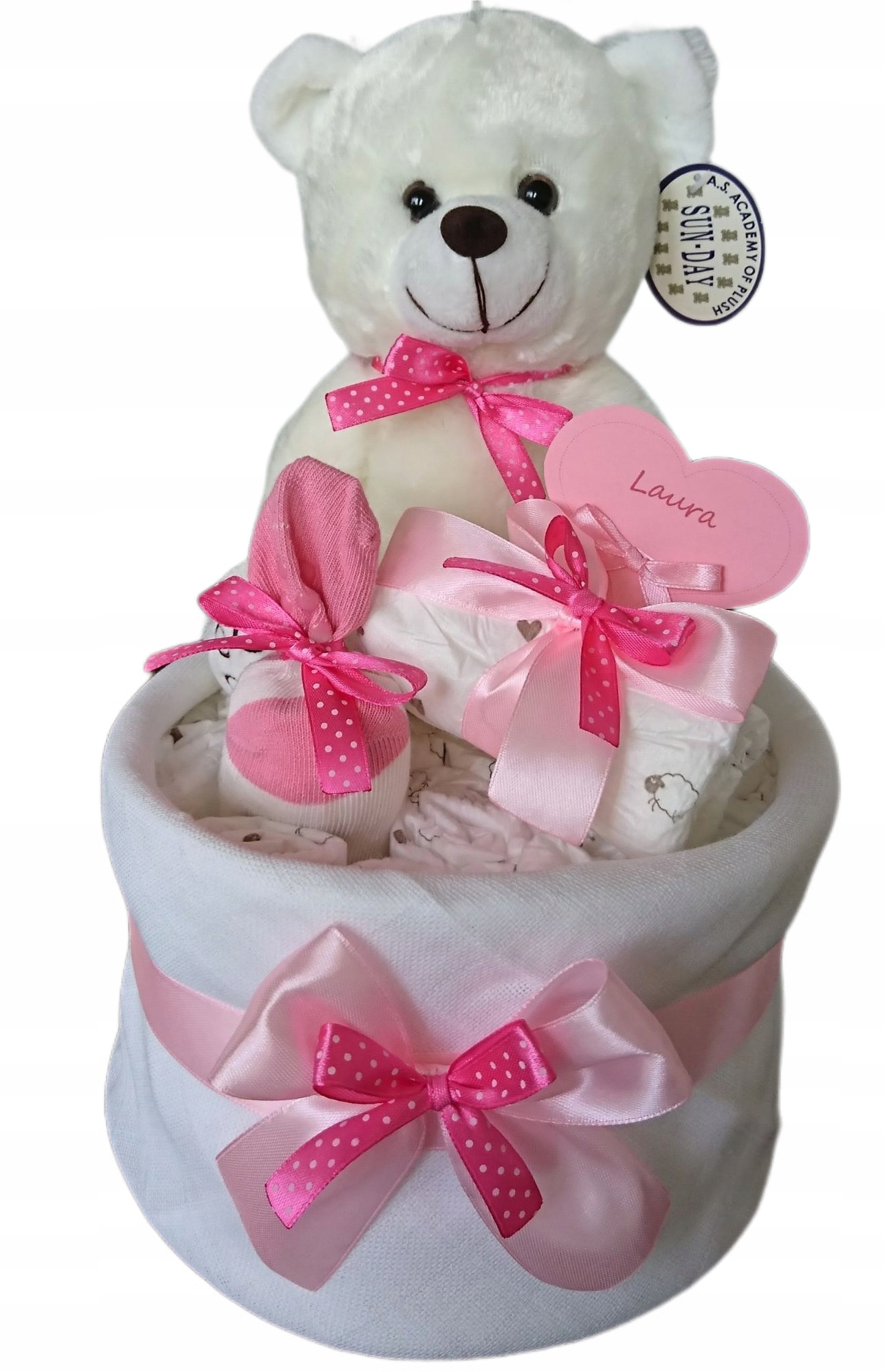 На этом аукционе мы предлагаем красивый торт из подгузников). Дополнительно мягкий МИШКА, крохотные детские носочки и белый тканевый подгузник.