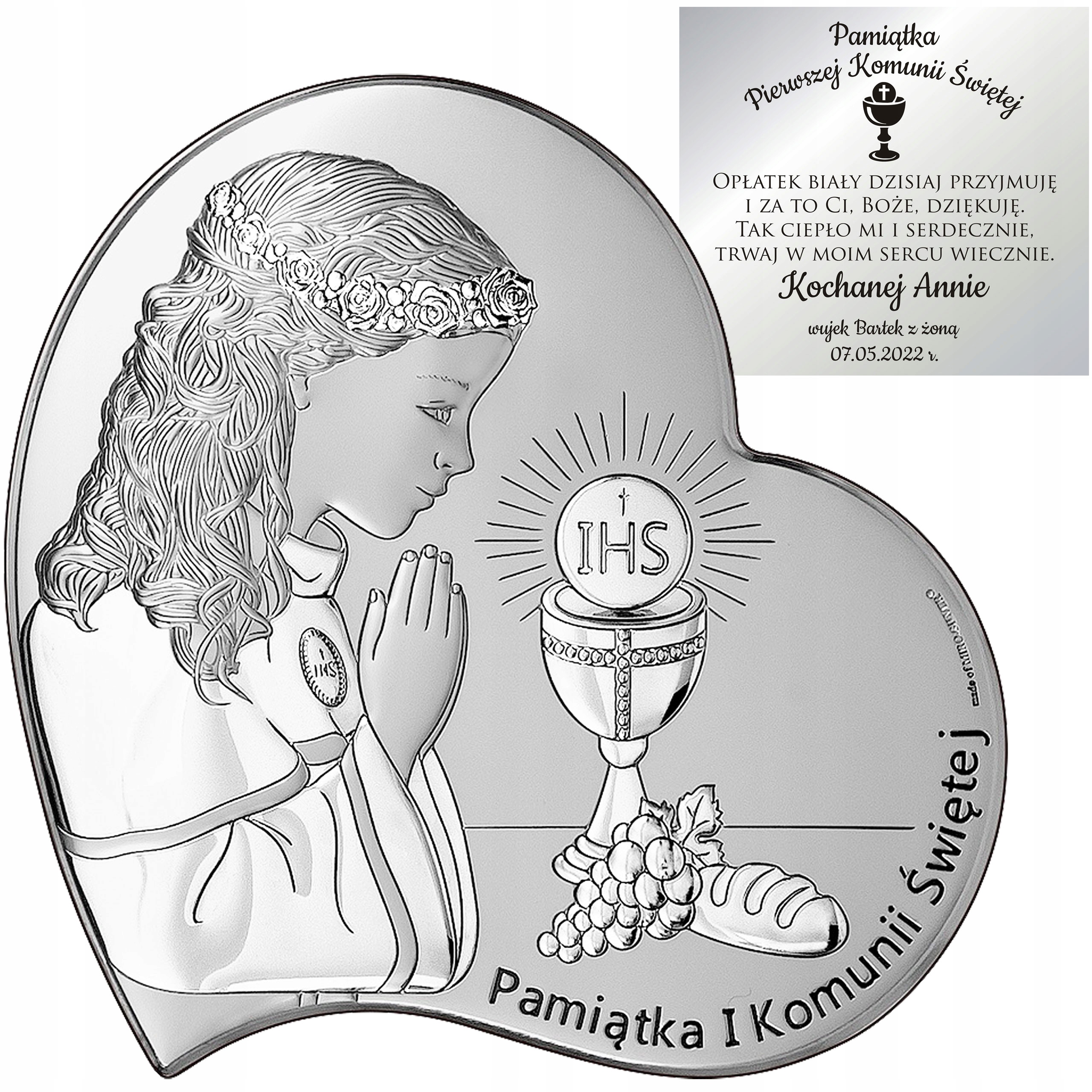 Серебряная картина с молящимся ребенком и Евхаристией - идеально подходит в качестве подарка к Первому Причастию.