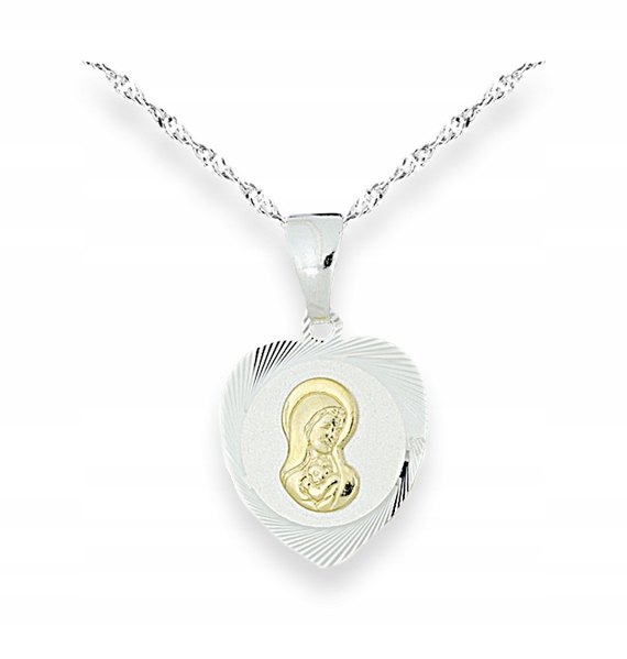 Элегантный медальон с фигуркой Девы Марии в сердечке