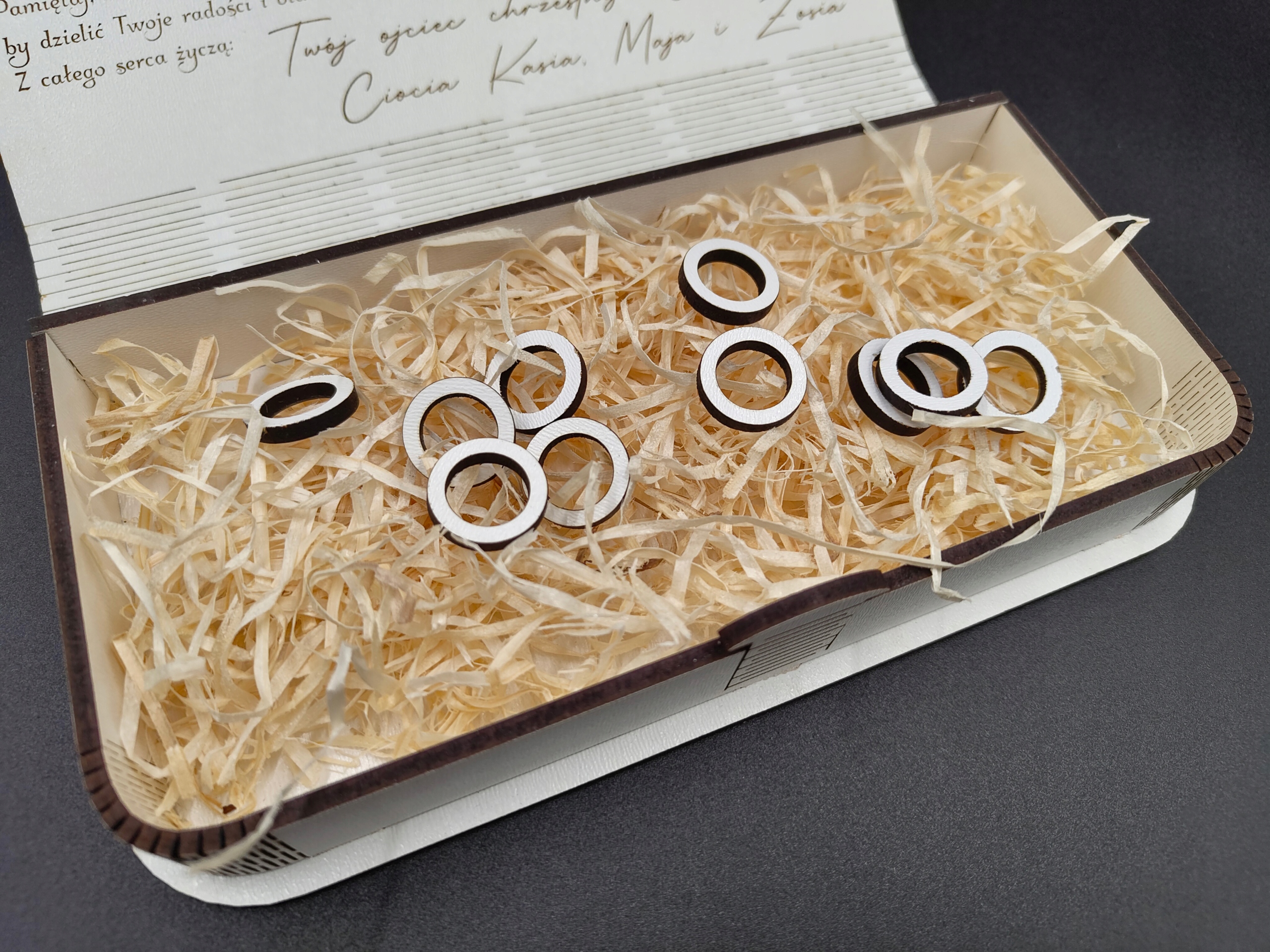 Это коробка денег предлагает возможность персонализации путем преданности гравюры в крышке. Благодаря этому, подарок станет еще более уникальным сувениром первого святого причастия . Вы можете выбрать одно из следующих пожеланий
