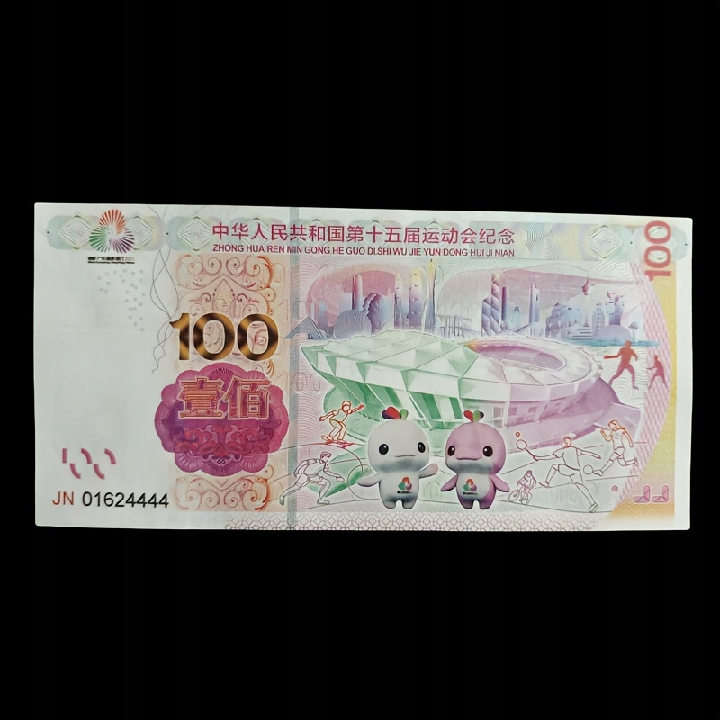 Я предлагаю уникальную китайскую памятную банкноту с деноминацией 100 юаней (юань), выпущенной по случаю 15 -й национальной игры китайской народной Республики, которые состоится в 2025 году! Это уникальный предмет для коллекционеров банкнот со всего мира, а также для любителей китайской культуры и спорта.