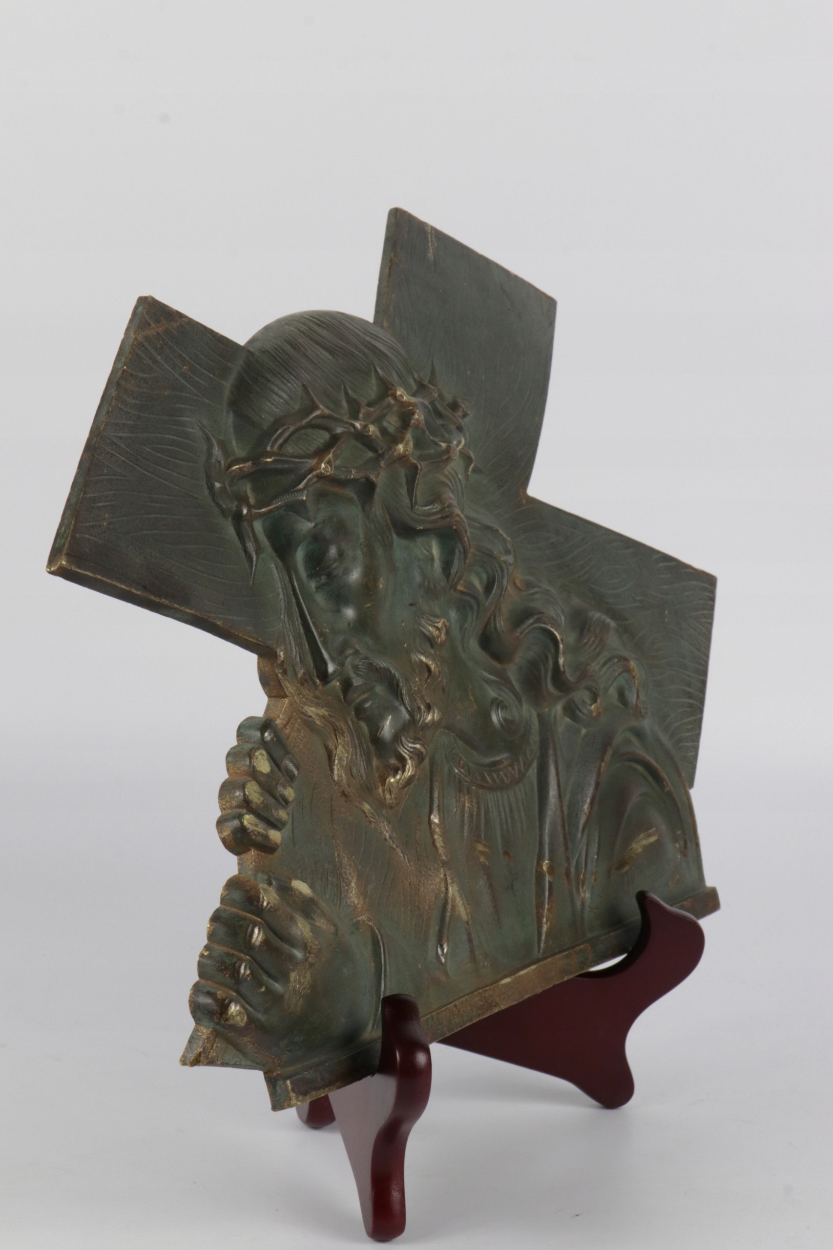 Мемориальная доска с рельефным изображением Иисуса Христа. Подписанная бронза.