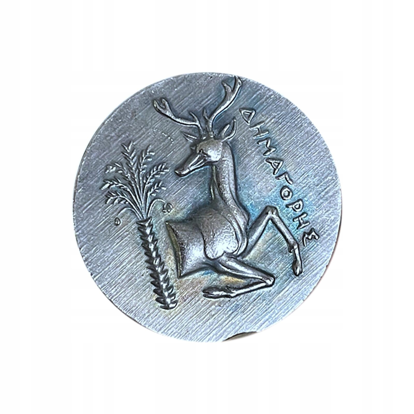 [Древняя медная монета]: древнегреческая медная монета с ярким изображением сидящего оленя.