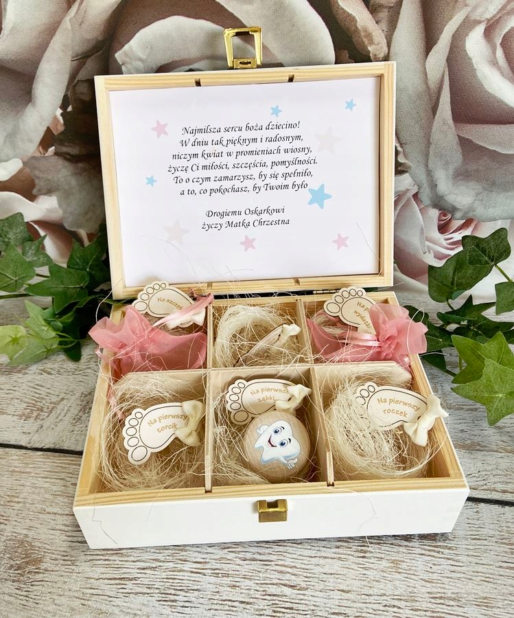 5) деревянная коробочка для первых зубов