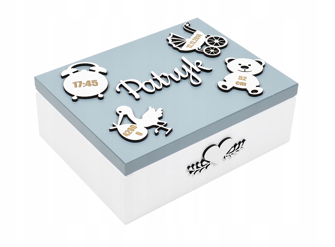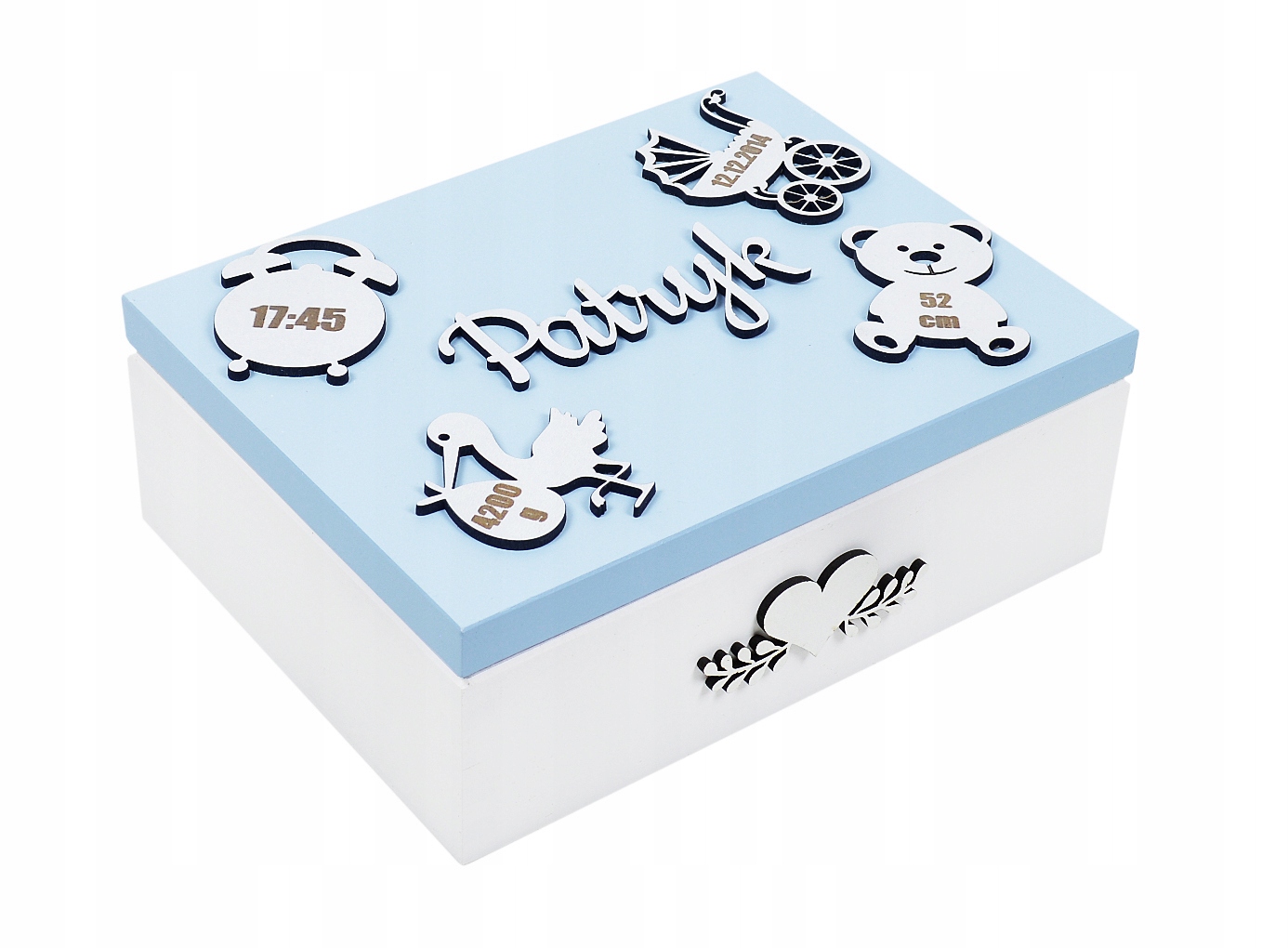 На следующем аукционе мы представляем Вам вневременную и необыкновенно красивую деревянную шкатулку воспоминаний. Это идеальный подарок на рождение ребенка, юбилей, день рождения или на память о крещении. Специальные отделения с гравированными деревянными кольцами помогут выбрать уникальные подарки. Коробка отличается выпуклыми наклеенными элементами с выгравированным свидетельством о рождении, что обязательно порадует родителей малыша.