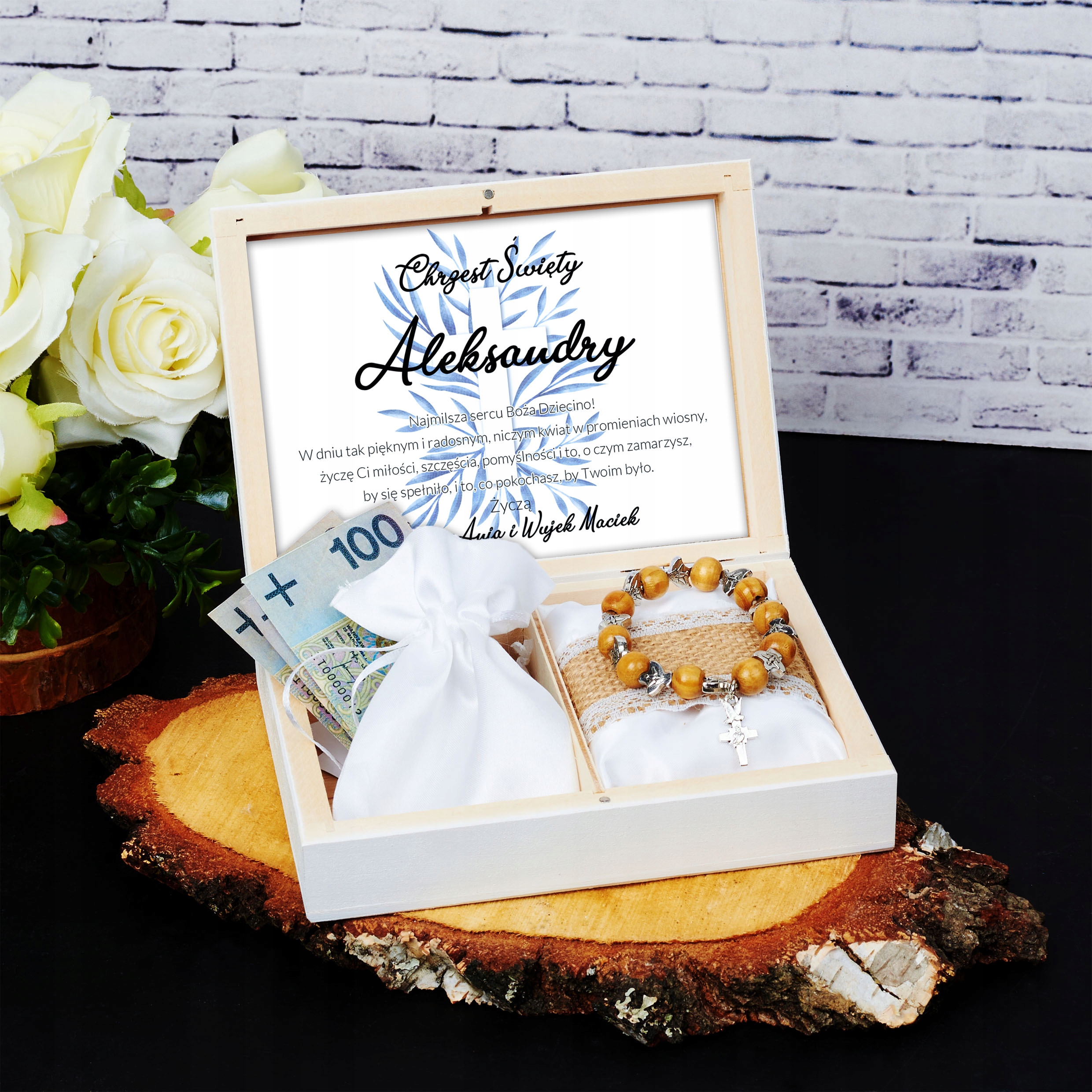 Красивый сувенир Святого Крещения, который прослужит долгие годы. Коробка с двумя белыми отделениями, в одном из отделений находится подушечка с четками. Во втором отделении находится атласный мешочек, в который можно положить деньги.