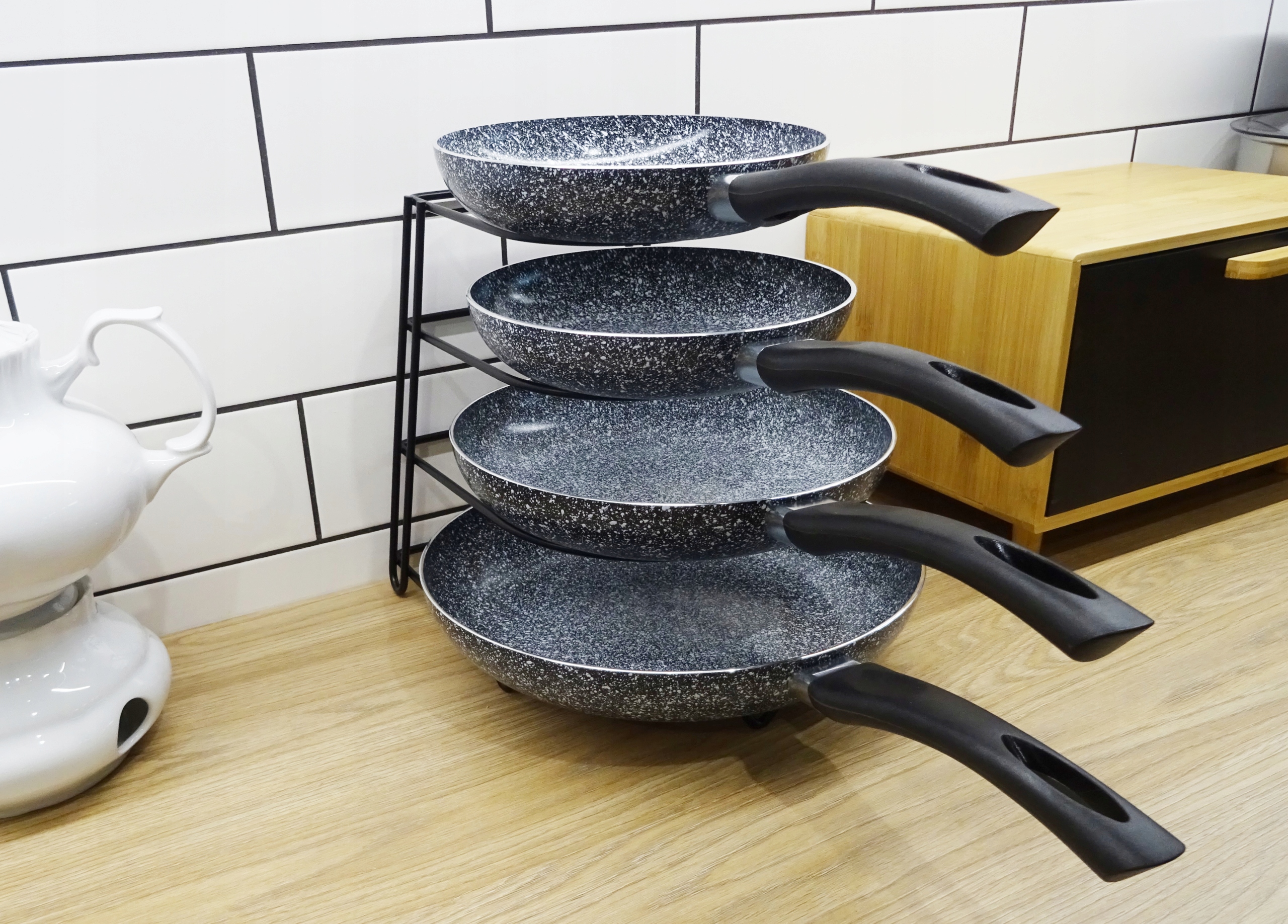 Подставка на 4 сковороды защитит их от царапин.