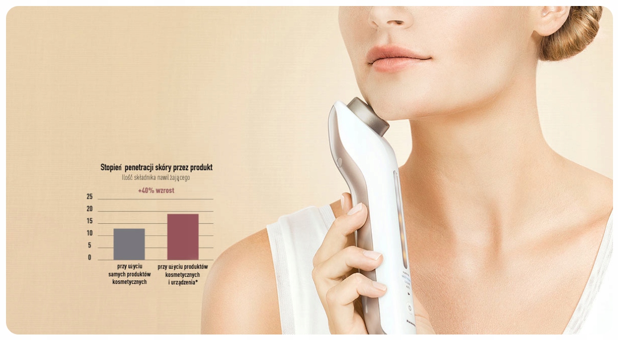 Тщательный уход за кожей необходим для сохранения ее молодости. Вдохновленный секретами японской целостной косметики, микротоковый стимулятор 3-в-1 сочетает в себе передовые технологии для оптимизации воздействия средств ежедневного ухода за кожей и обеспечения лучшего увлажнения кожи, уменьшения количества видимых пор и улучшения овала лица, разглаживания морщин. Ежедневное омоложение кожи за несколько минут - уменьшение глубины морщин через 4 недели при использовании ночного крема (по сравнению с необработанным участком)