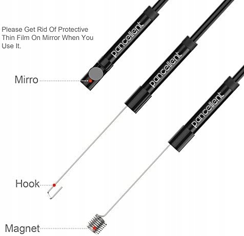 Комплект поставки: 1 эндоскоп Android Pancellent, 1 аксессуары (маленький крючок, магнит), 1 кабель OTG, 1 руководство пользователя