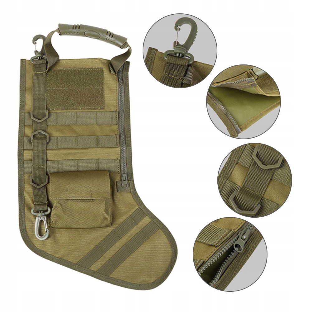 1. Изготовлен из высококачественного полиэфирного волокна 600D, прочного и прочного, с полипропиленовой лентой. 2. Его можно использовать для установки походных принадлежностей, ножей и других аксессуаров и мелких инструментов. Это идеальный выбор для любителей активного отдыха. 3. Примите специальную форму рождественских чулок, уникальную и модную. 4. Прочная ручка, легко носить с собой и удобна в руке. Оснащен крючком и петлей для удобного подвешивания и крепления наружных материалов. 5. Снаружи имеется небольшая сумка для хранения мелких предметов, а застежка-молния позволяет легко открывать и закрывать ее. 6. Многофункциональные носки, поистине уникальные рождественские носки!