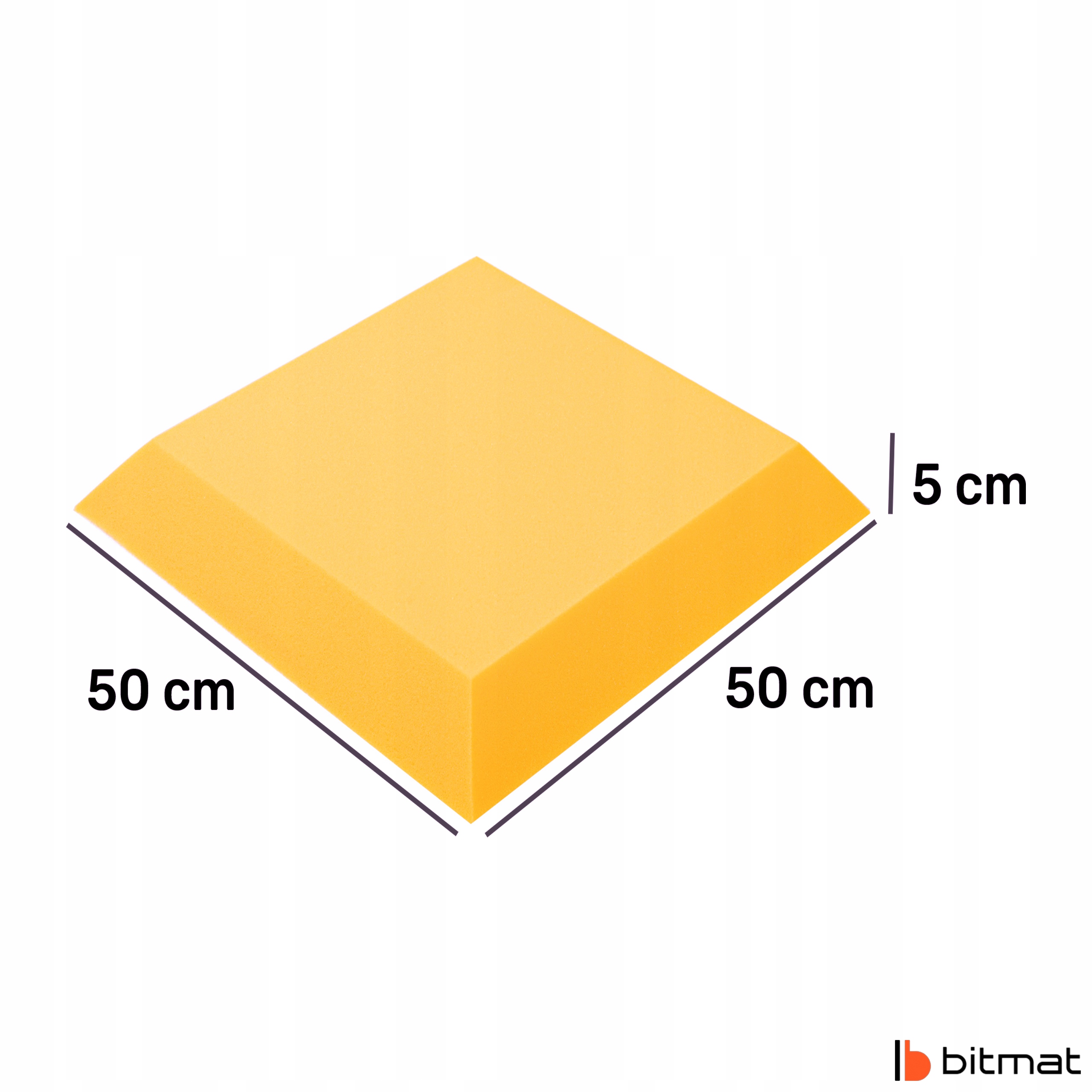 Acustic Panel Bitmat Traptzy 50 × 50 × 5 см в желтом оттенке - это эстетическое и функциональное решение для улучшения акустики помещений. Изготовленная из полиуретановой пены с открытой клеточной структурой, панель эффективно поглощает звуковые волны, ограничивая эхо, отражения и резонанс в комнате. Благодаря вырезанным краям вы можете создать эстетические геометрические системы, которые визуально диверсифицируют пространство. Интенсивный желтый цвет отлично работает в современных интерьерах: от домашних игровых комнат до творческих офисов и исследований.