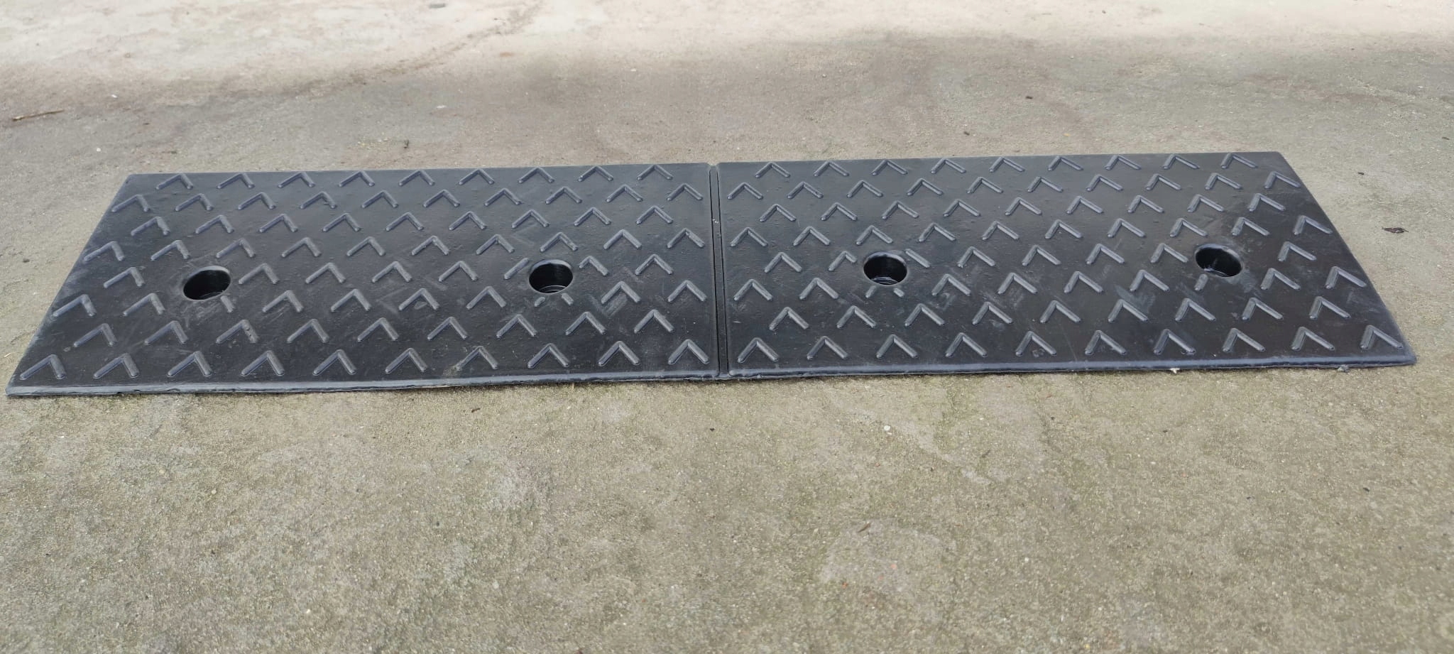 Изготовлен из противоскользящей резины со специальной текстурой черного цвета. Этот материал устойчив к большим нагрузкам. Его несущая способность высока, что позволяет использовать его в местах интенсивного движения большегрузного транспорта. Резиновая бордюрная рампа позволяет легко преодолевать дорожные препятствия. Его можно использовать в сложных условиях – например, на обширных промышленных объектах, где транспортируются различные виды химикатов, в том числе смазочные материалы и топливо.