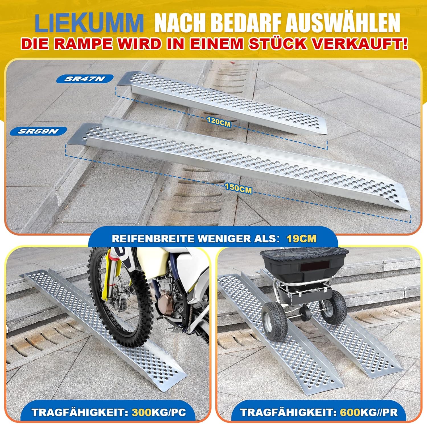 LIEKUMM Стальная погрузочная рампа 150 см Погрузочная рампа с пуансоном, грузоподъемность 300 кг/шт. для мотоциклов, квадроциклов, грузовиков, квадроциклов, газонокосилок, снегоочистителей, в упаковке 1 шт