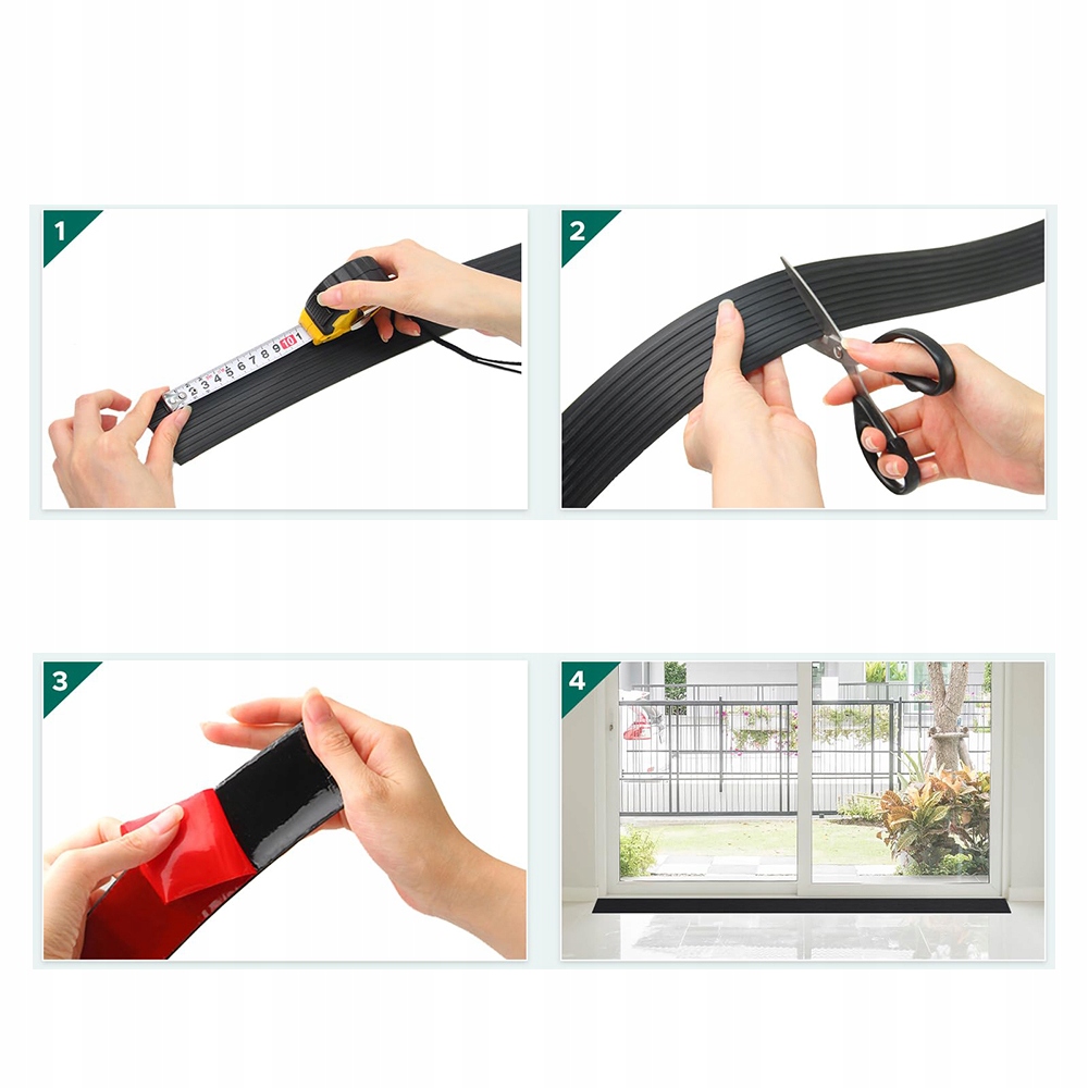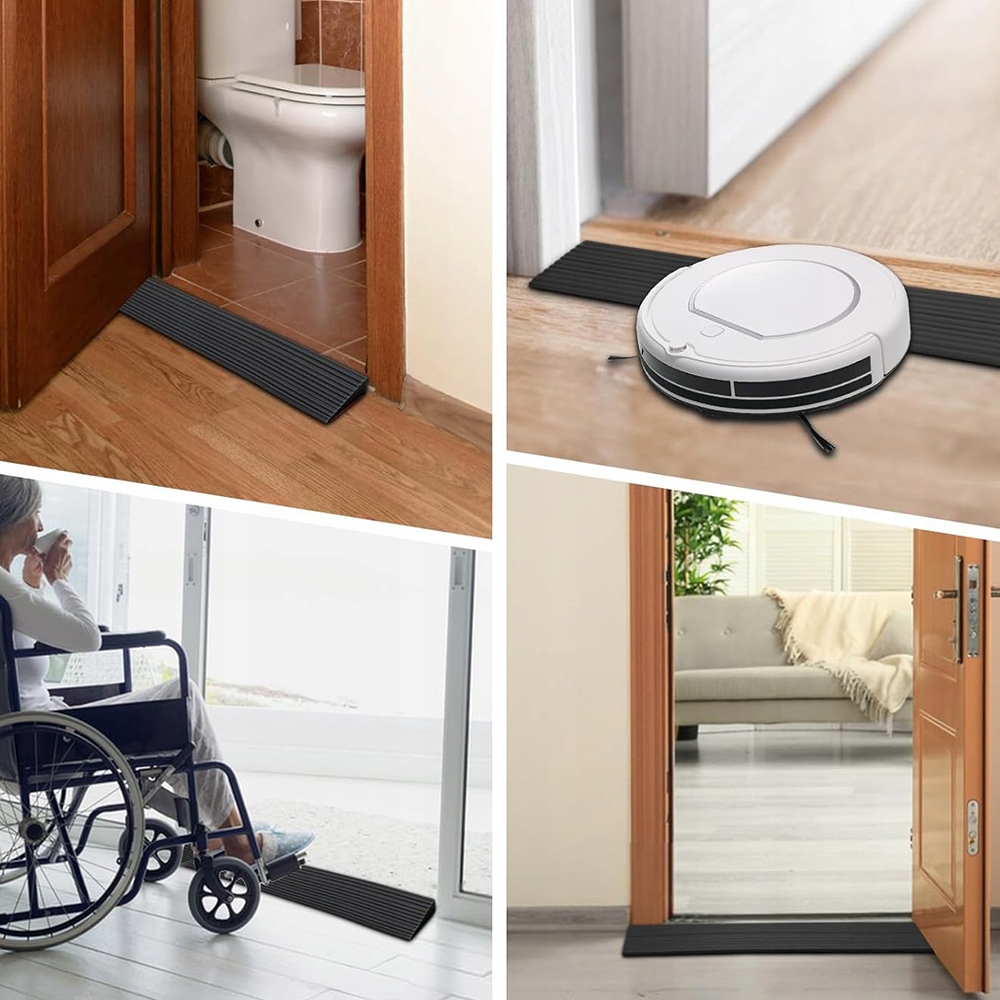 ✅Разрез: Если резиновый пандус слишком широкий, его можно обрезать до нужной ширины. Оставшуюся часть также можно использовать в качестве ограничителя двери, защищая порог от повреждений. Если порог слишком высок для наших пандусов, вы можете купить два пороговых пандуса и поставить их друг на друга.
