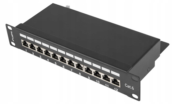 Патч-панель предназначена для использования в основных и промежуточных точках распределения в высокоскоростных сетях ИКТ. Это пассивный элемент структурированной кабельной системы, используемый для терминации и организации витой пары в стоечных шкафах 10". Патч-панель оснащена 12 экранированными портами RJ-45 категории 6.