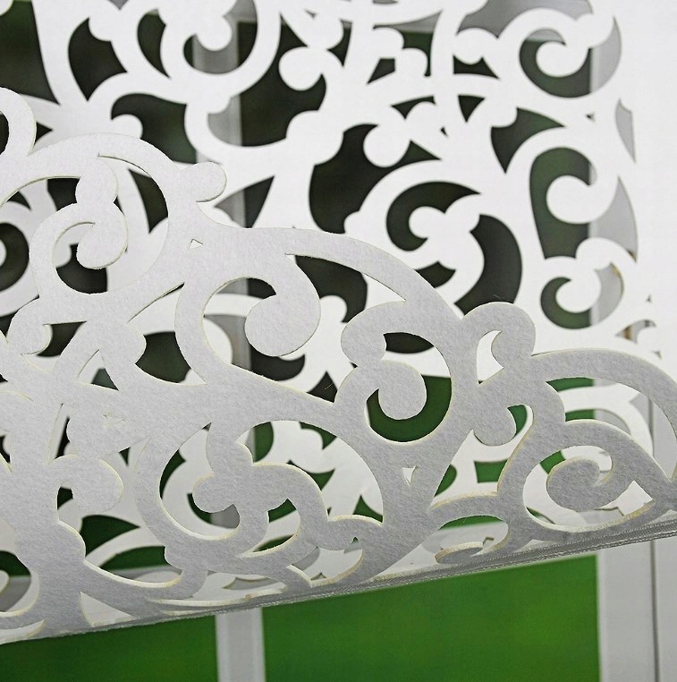 Ажурный узор вырезан современным лазерным методом, который не обесцвечивает материал и позволяет получить идеально гладкий, не осыпающийся край.