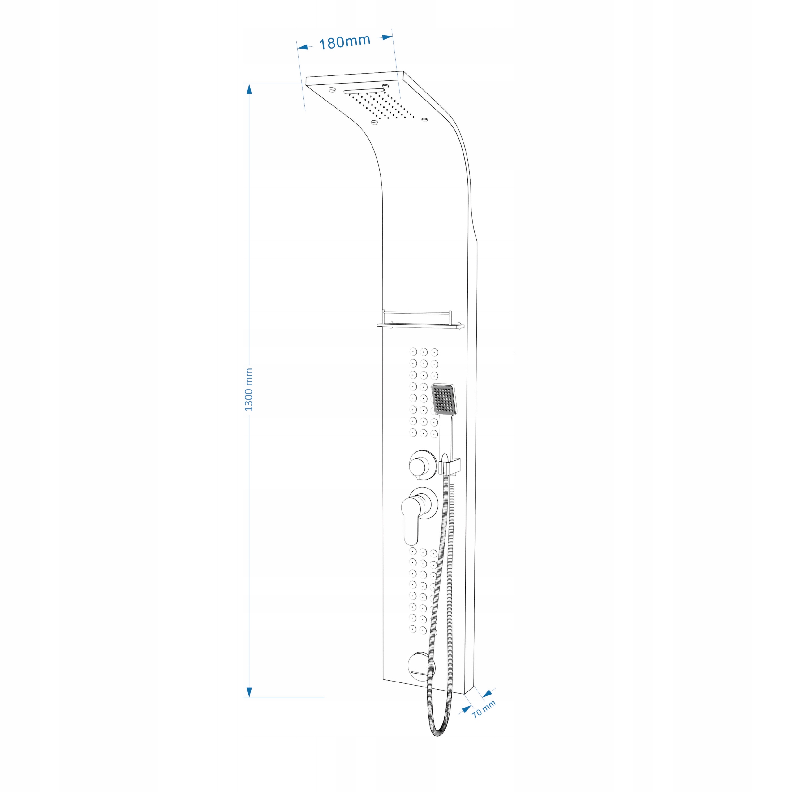 Душевая панель Dakota с гидромассаж +термостат +полка +каскад +носик