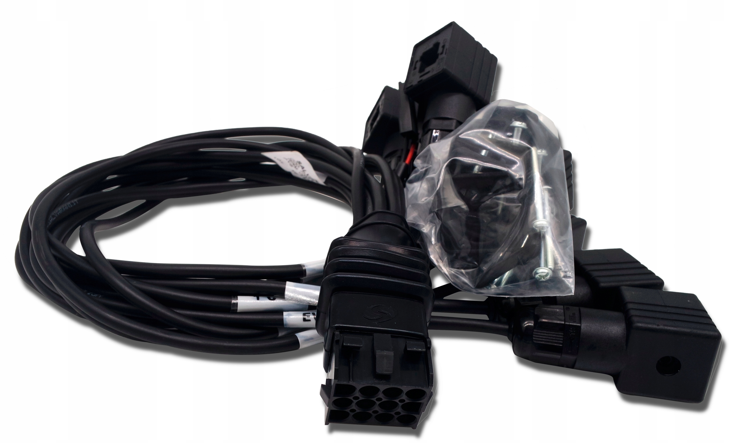 Комплект включает в себя набор электрических кабелей, необходимых для питания панели и подключения ее к гидравлическому распределителю. На других наших аукционах вы найдете комплекты с удлинителем и другими аксессуарами.