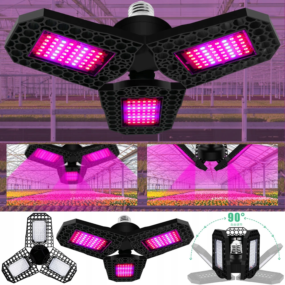 【Складная лампа для выращивания】Светильник для выращивания имеет 3 крыла, которые можно регулировать на 90°. Три крыла с углом луча 120° увеличивают эффективную площадь освещения для большего количества растений. Светодиодный светильник для выращивания растений может покрывать максимум 4x4 фута. При минимальной стоимости эти светодиодные лампы для выращивания растений обеспечивают целевую длину волны на большой площади, что способствует росту комнатных растений.
