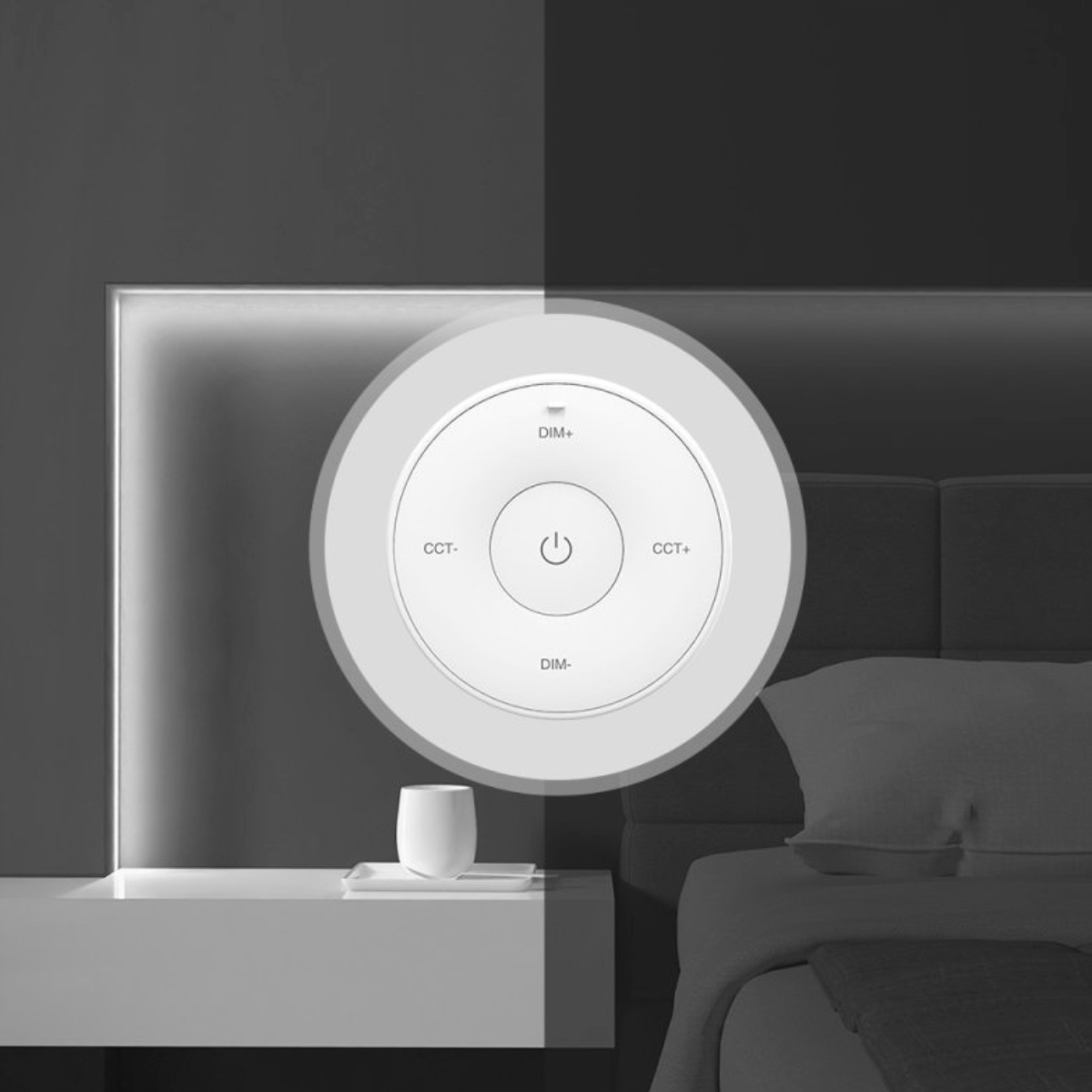 Небольшой пульт дистанционного управления предназначен для управления одноцветным и светодиодным освещением (CCT). - Пульт дистанционного управления K2 обеспечивает бесступенчатое затемнение и яркость, а также установка цветовой температуры в диапазоне 2700 - 6500К.Пульт дистанционного управления крепится магнитом к прямоугольной подставке, которую можно прикрепить к стене.