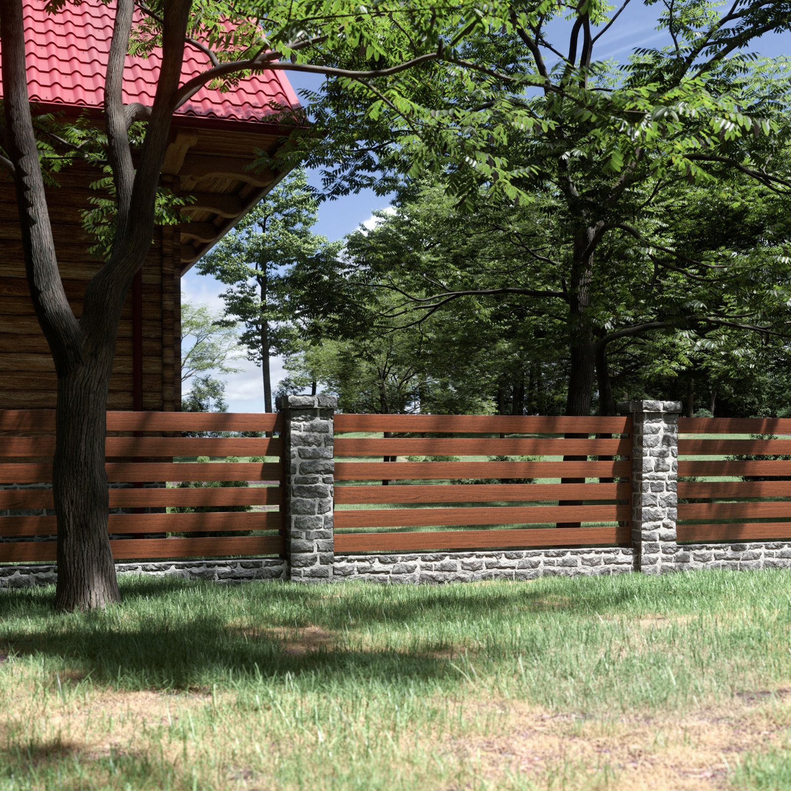 - Заборы изготовлены из покрытой стали, защищен слоем оцинкованных и защитными покрытиями