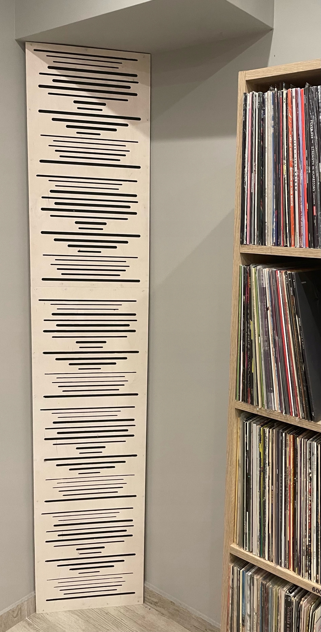 Деревянная передняя панель выполняет двойную функцию: обеспечивает достаточное поглощение средних и высоких частот для контроля угловых отражений, не ослабляя звук, а также действует как диффузор.