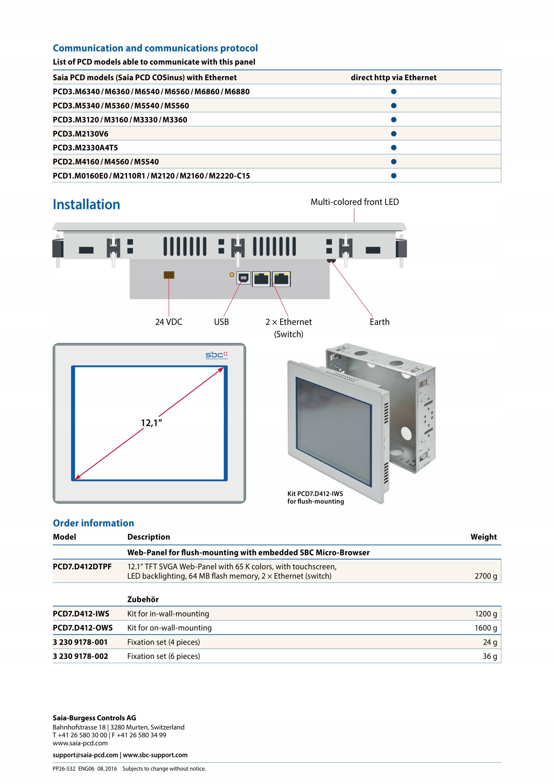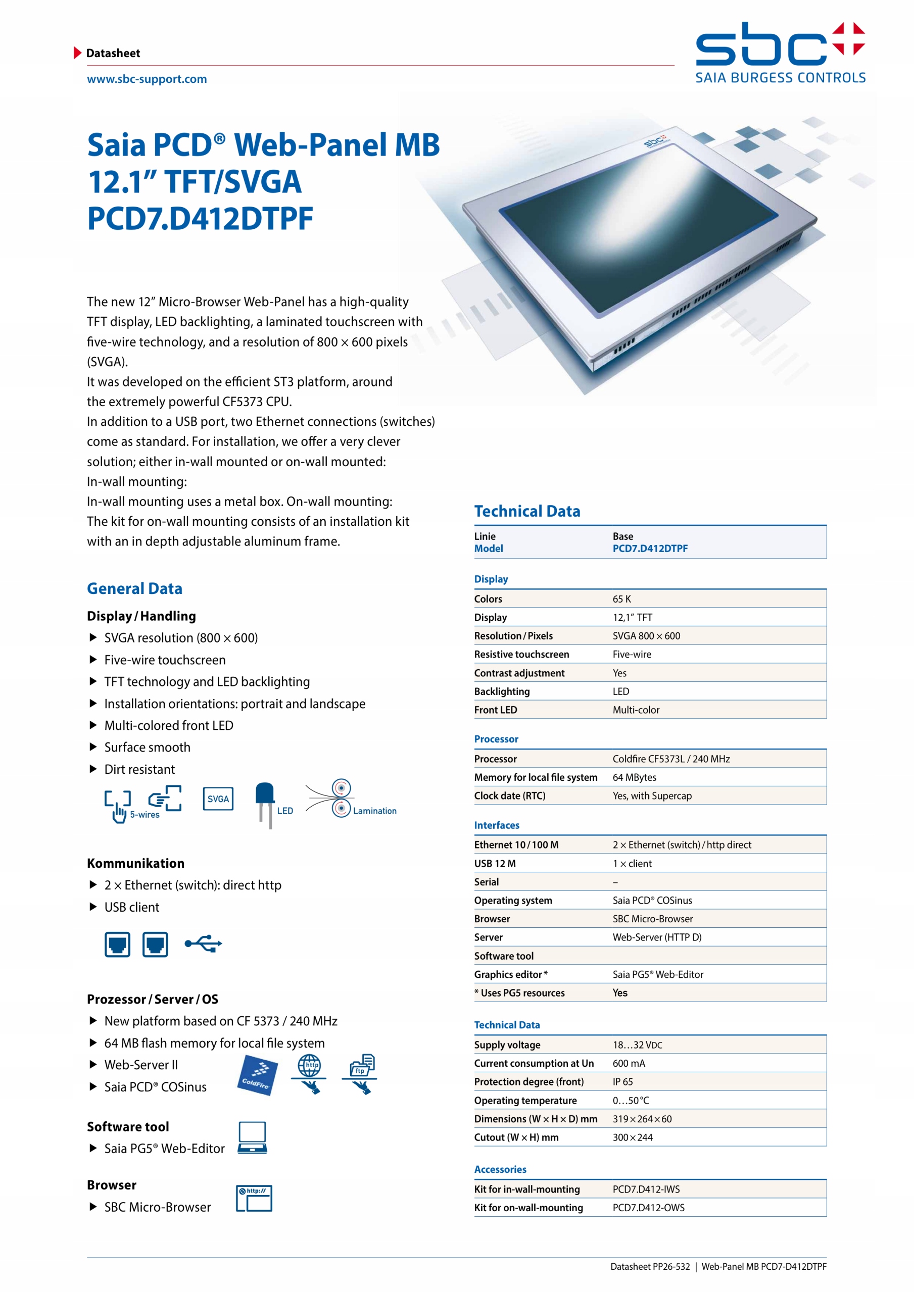 Панель оператора Saia PCD PCD PCD7.D412DTPF 24 В постоянного тока