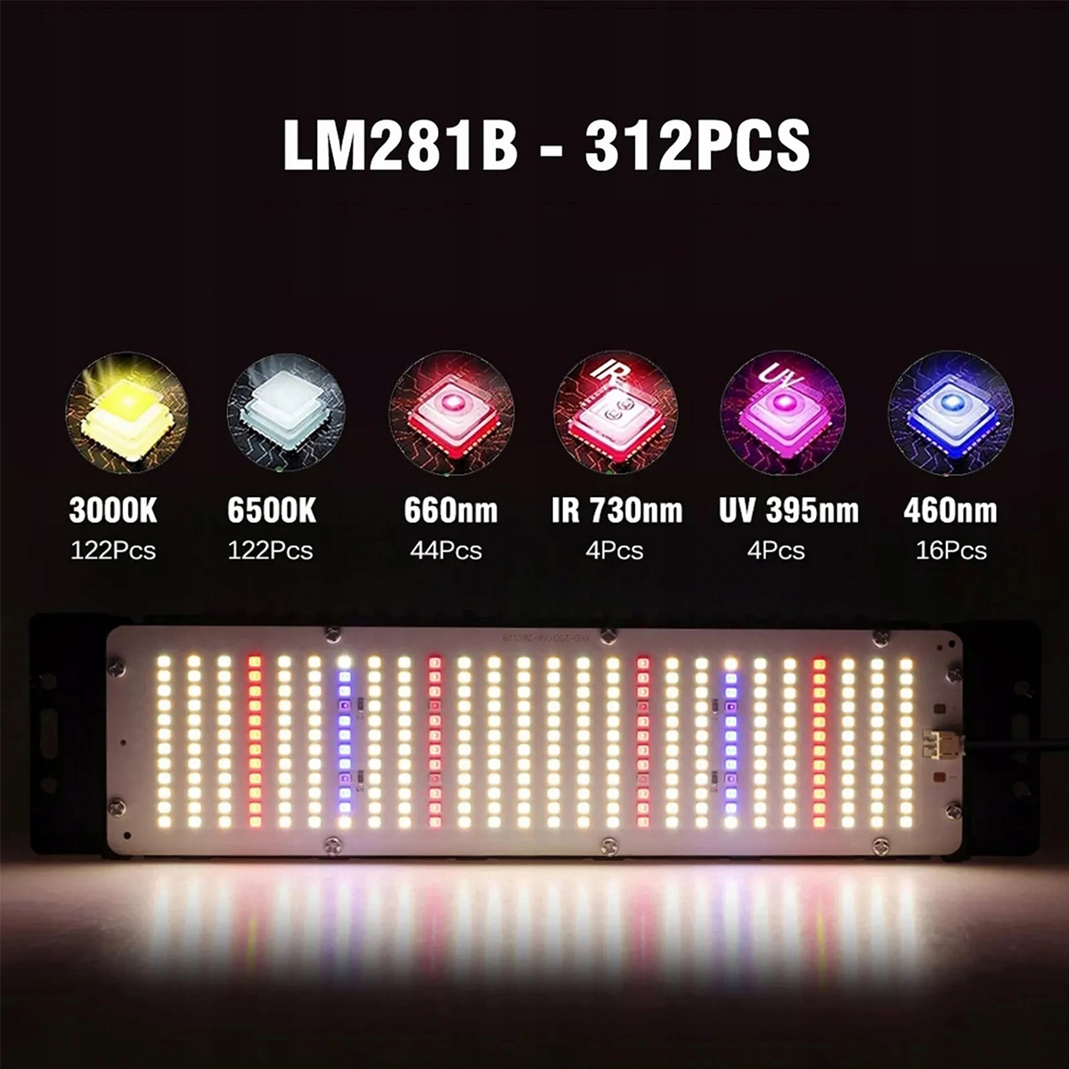 Идеальный свет для полного выращивания спектра, аналогичный солнечному свету, включая теплый свет 3000 К, белый свет 5000 К, красный свет 660 нм, синий свет 460 нм, инфракованный свет 730 нм и UV 395 Light NM, эффективно поддерживает рост заводов и увеличивает коверы. УФ -395 нм свет держит растения в здоровье.