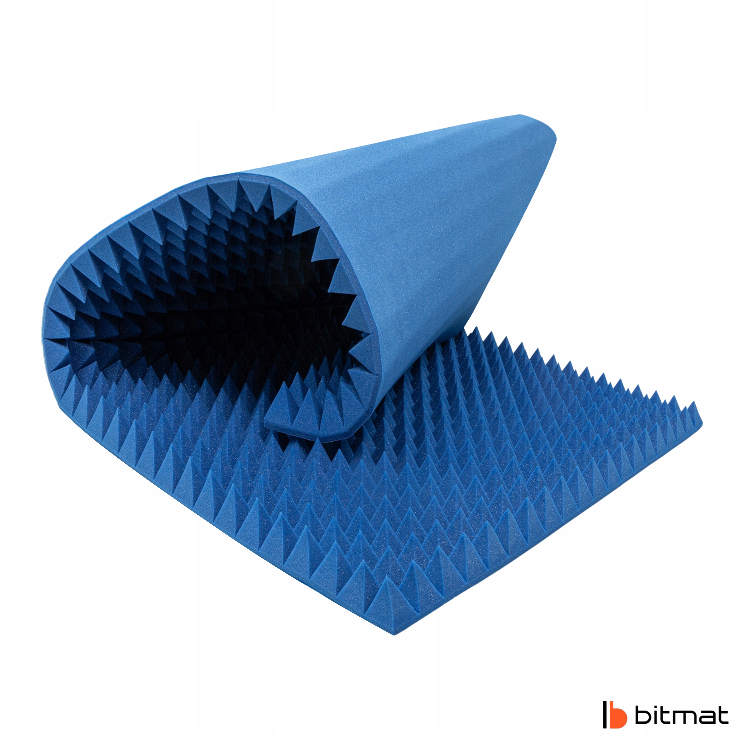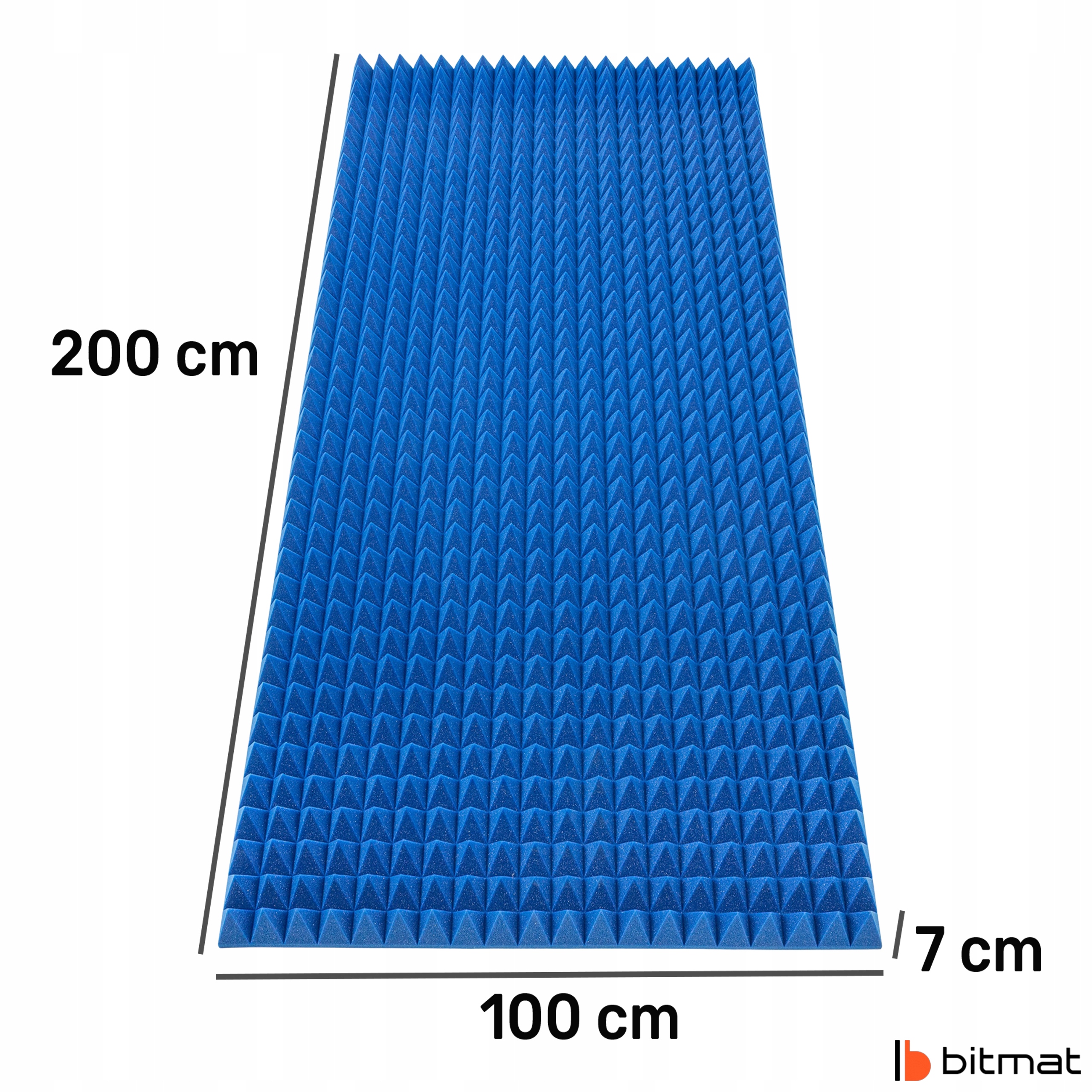 Профессиональная польская акустическая пена типа ПИРАМИДКА толщиной 7 см и большого формата 200×100 см, синего цвета – решение для людей, которые ожидают не только эффективности, но и эстетики и долговечности. Изготовленный из высококачественного пенополиуретана с открытой ячеистой структурой, он обеспечивает эффективное подавление звука, особенно реверберации, эха и грохота. Это панель, посвященная помещениям с повышенными акустическими требованиями: студии звукозаписи, кинозалы, игровые комнаты, а также офисные помещения open space.
