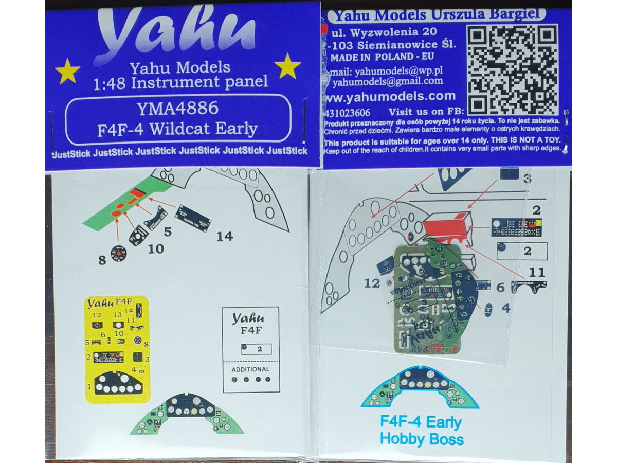 Цветная приборная панель с фототравлением, готовая к установке в модель (JustStick). Набор фототравленных элементов для повышения ценности модели, предназначенный для использования в моделях самолета Grumman F4F-4 Wildcat в масштабе 1:48 из предложения Hobby Boss.