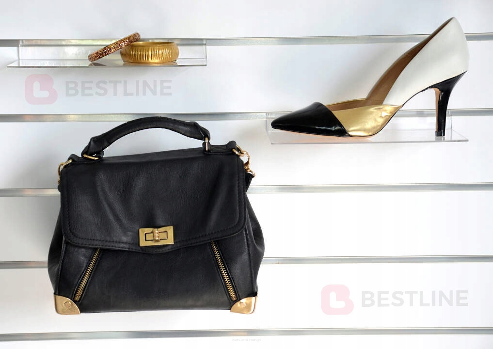 Интервал каждые 10 см хорошо работает при представлении товаров меньшего размера, самое популярное решение — это фрезеровка каждые 15 см — используется в магазинах одежды. Штыри через каждые 20 см обеспечивают дополнительное расположение и визуальные возможности. Они идеально подходят для презентации более крупных товаров, например инструментов в музыкальных магазинах.